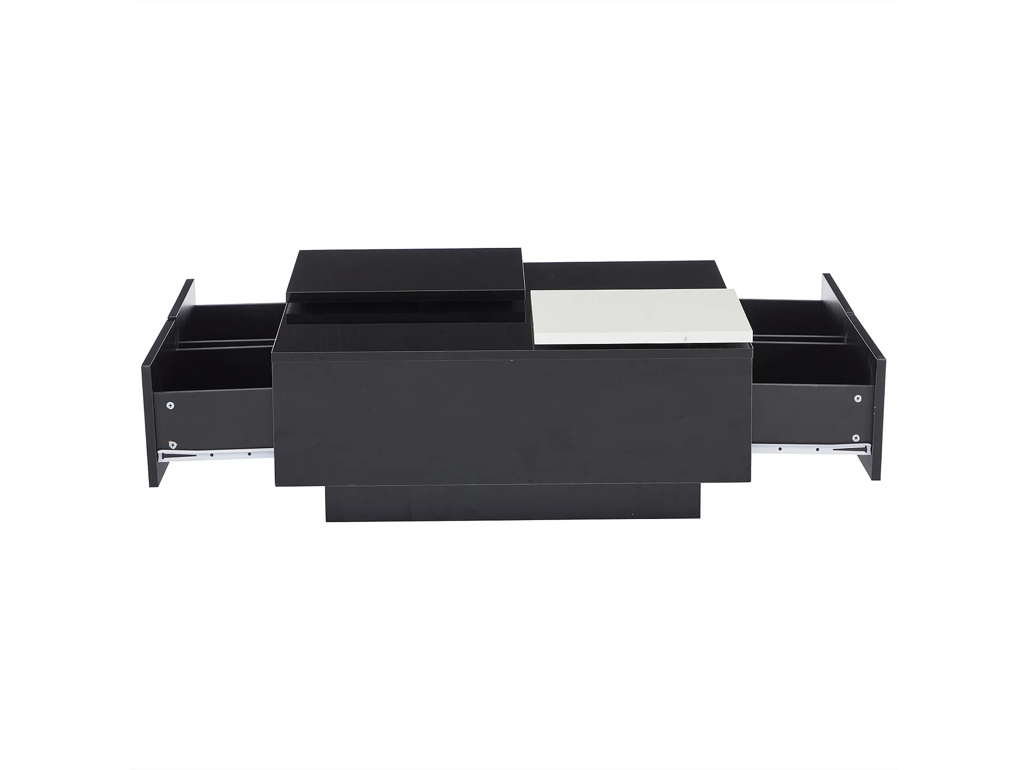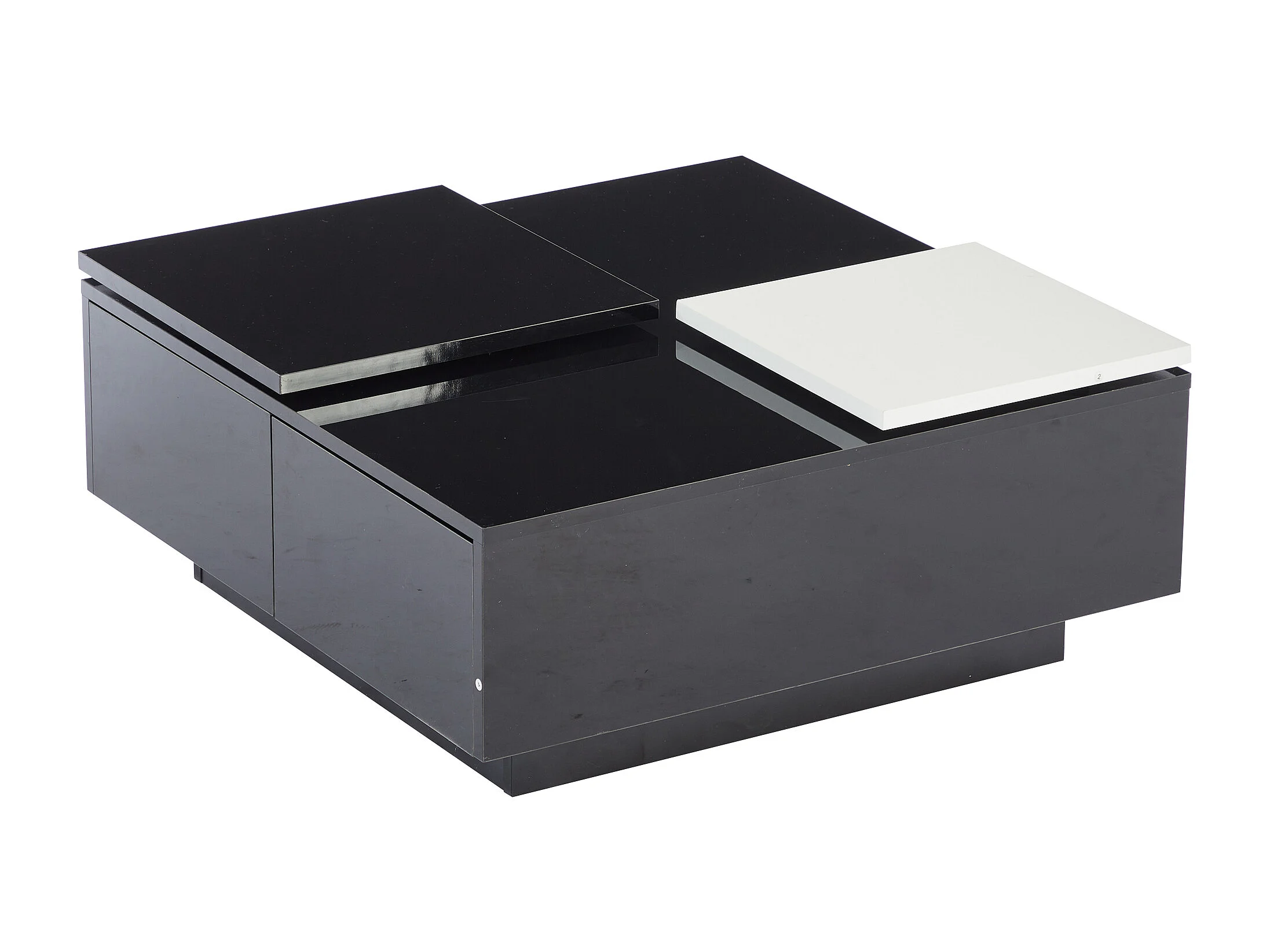 Table basse carrée avec 4 tiroirs - Petit plateau coulissant - Brillant finition - Noir