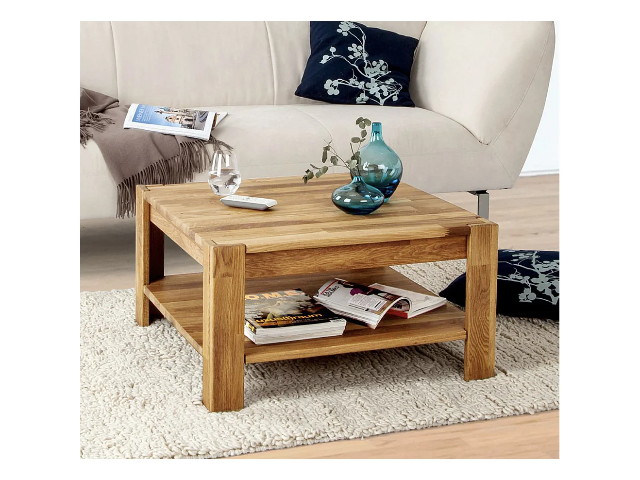 Table basse carrée en bois de chêne massif Ritza 70cm
