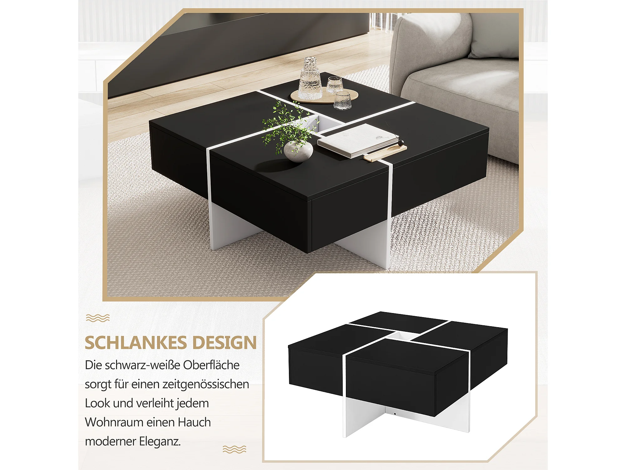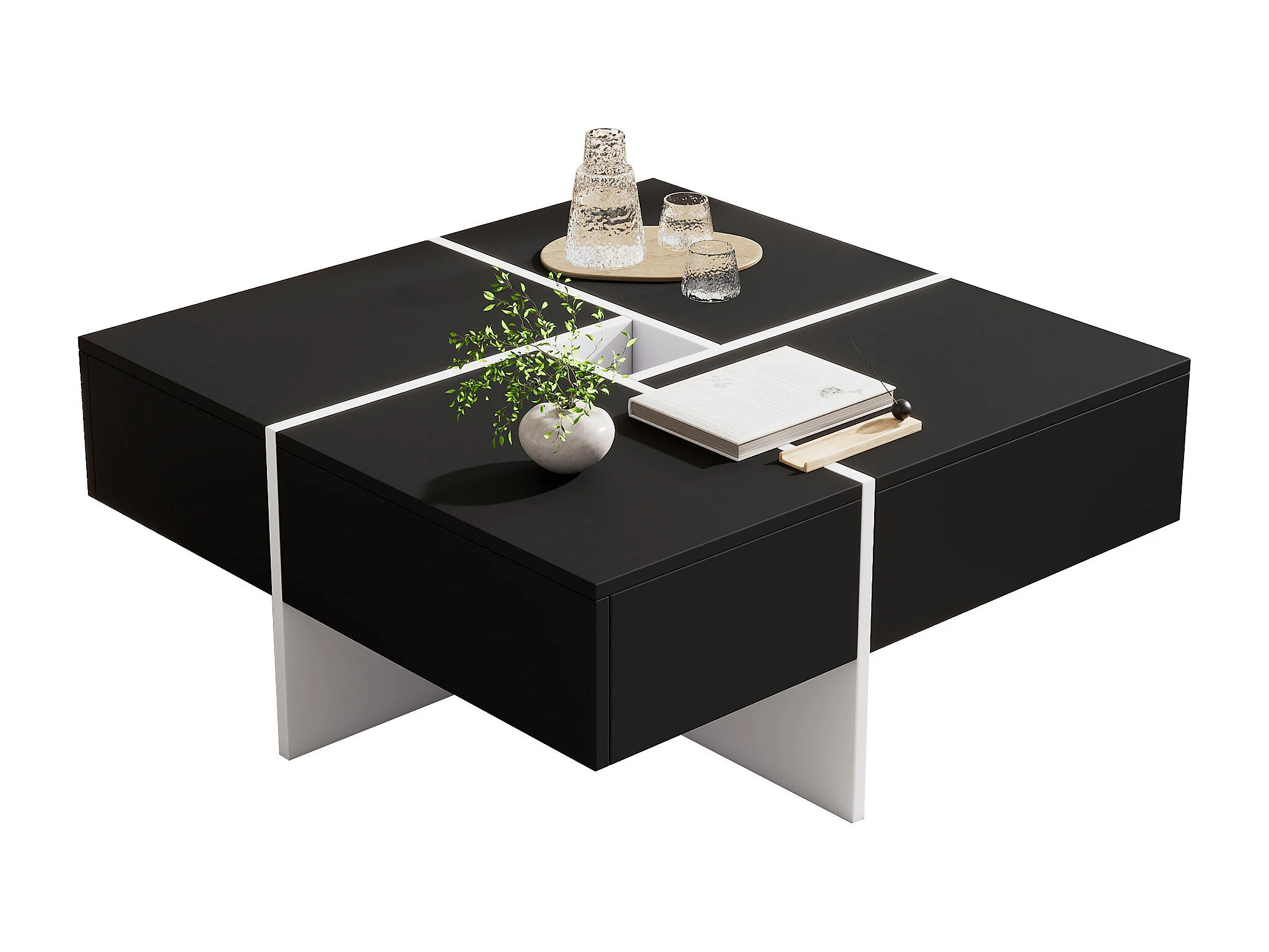 Table basse carrée moderne 70 x 70 x 35 cm - avec compartiment de rangement central de 10 x 10 cm – panneaux de particules - noir
