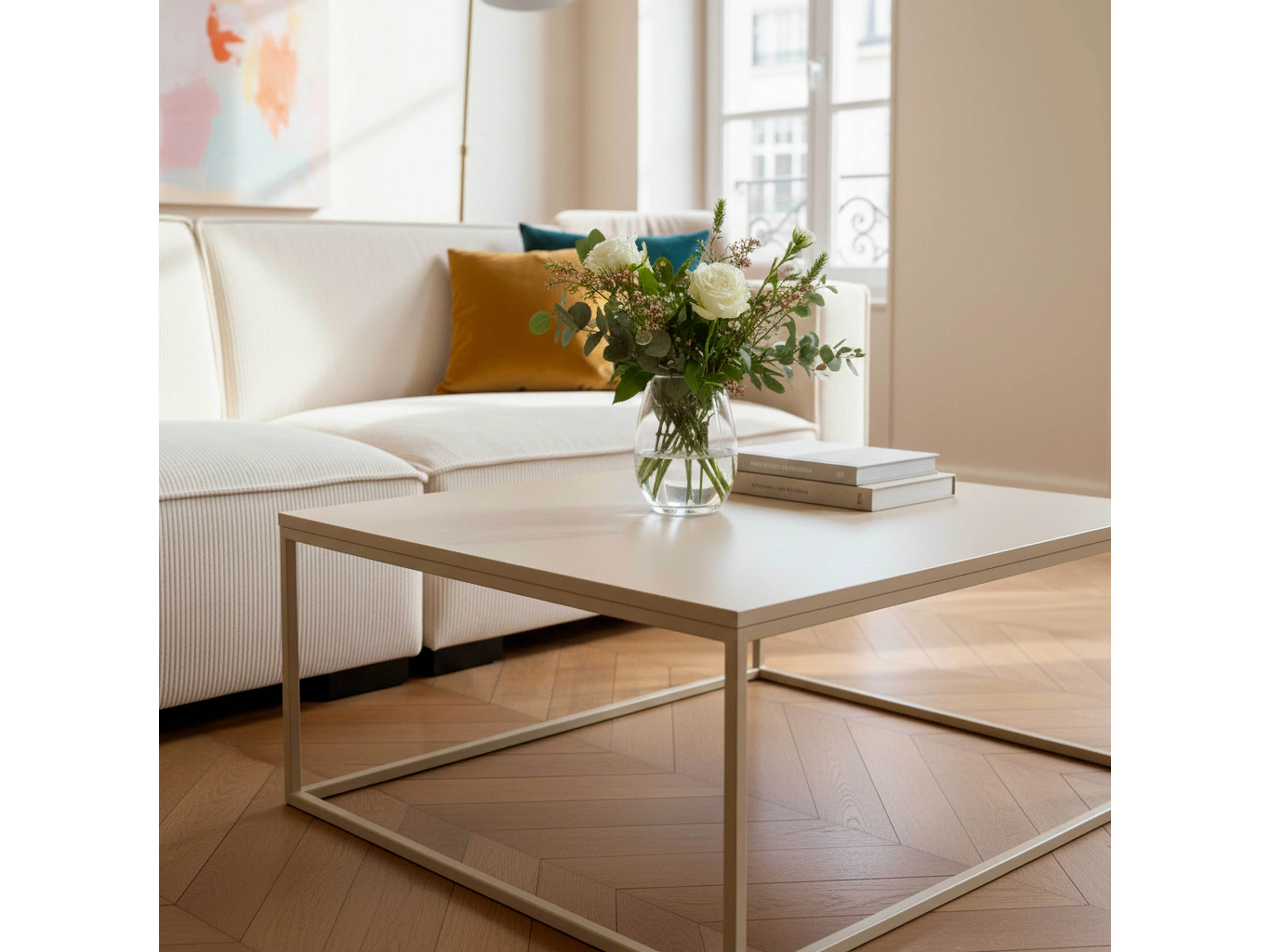 Table basse carrée moderne L90 cm écru