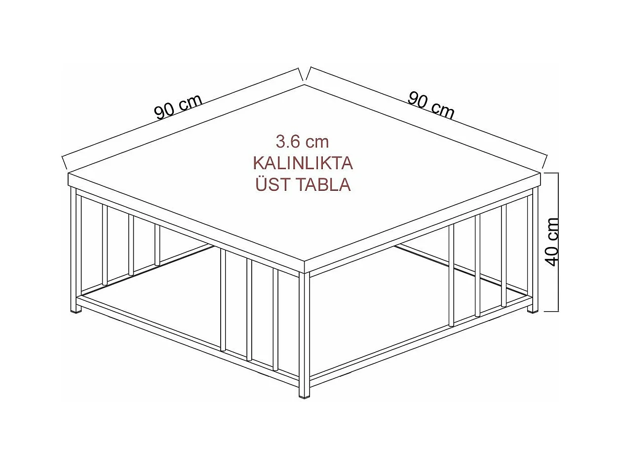 Table basse carrée Olliana 90x90cm Bois Anthracite et Métal Noir