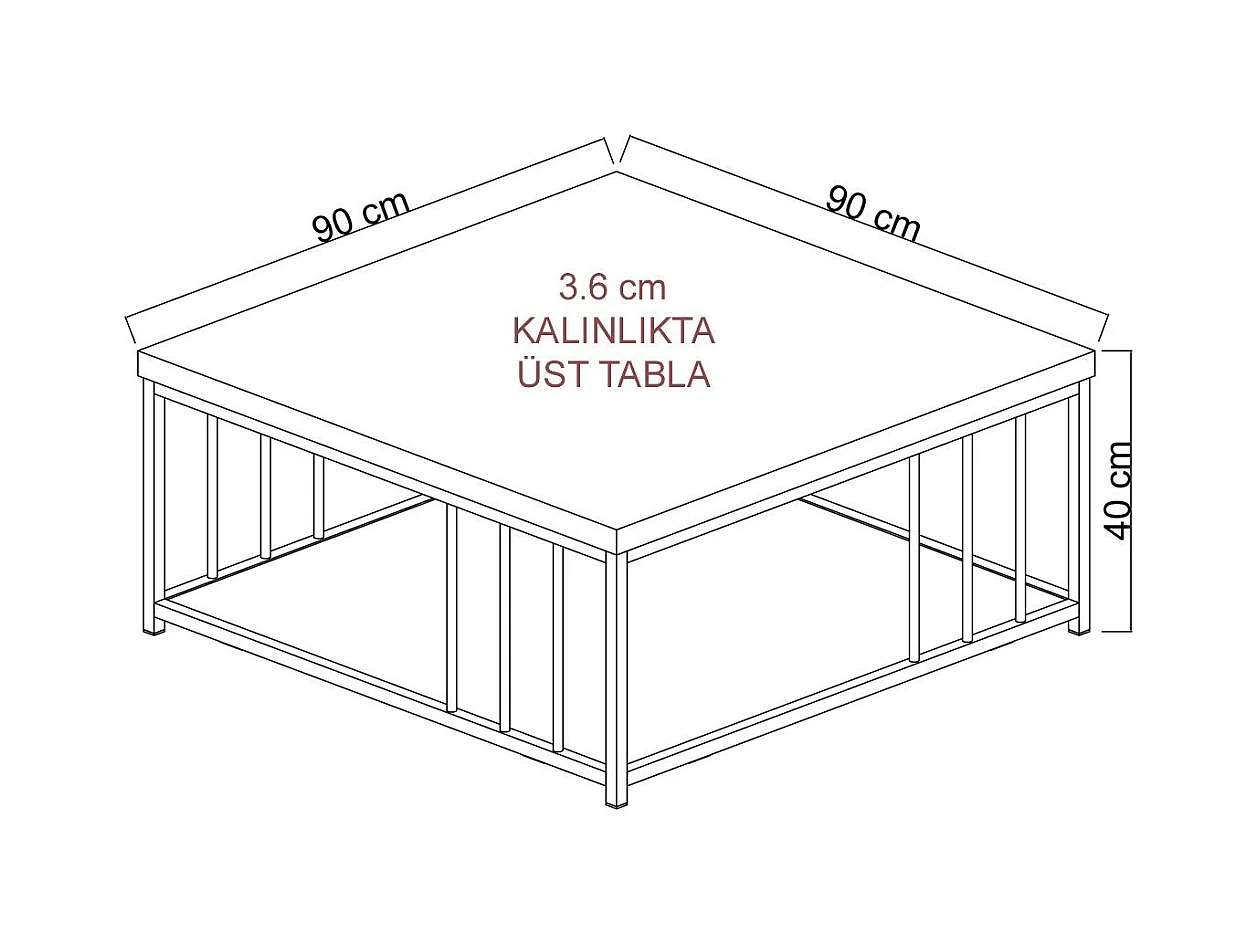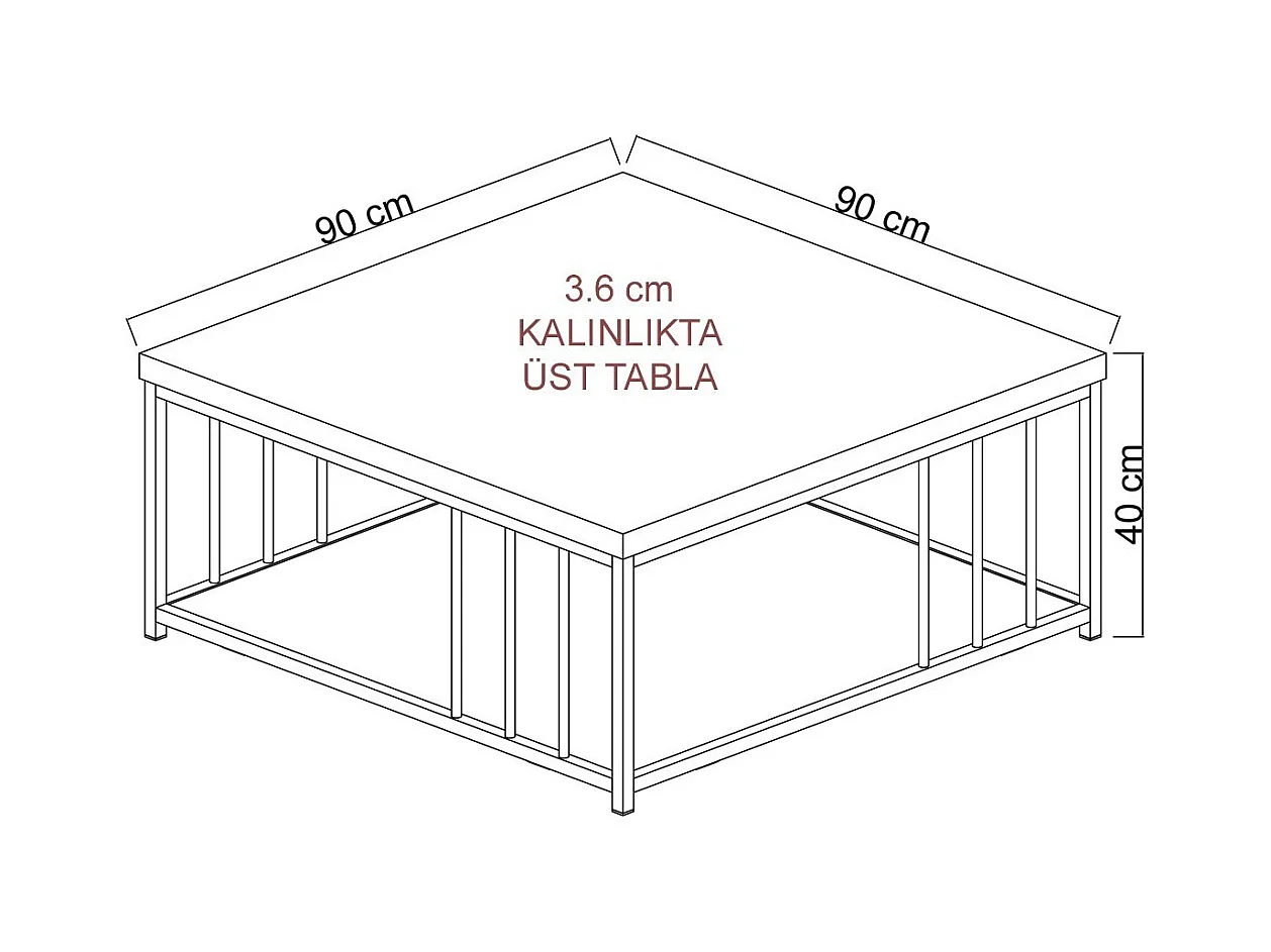 Table basse carrée Olliana 90x90cm Bois foncé et Métal Noir