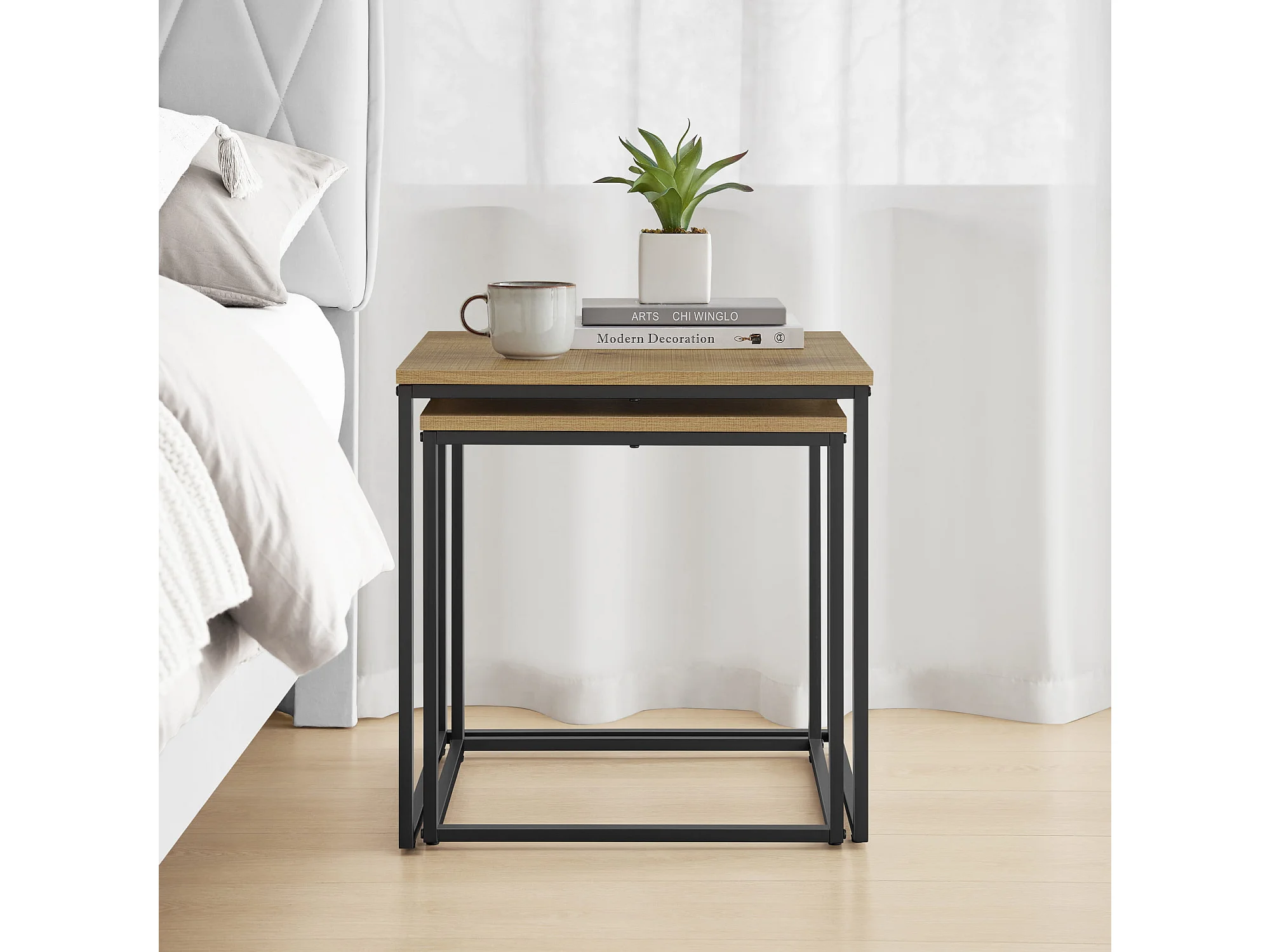 Table basse carrée Valora, lot de 2 | Plateau en chêne et pieds noirs