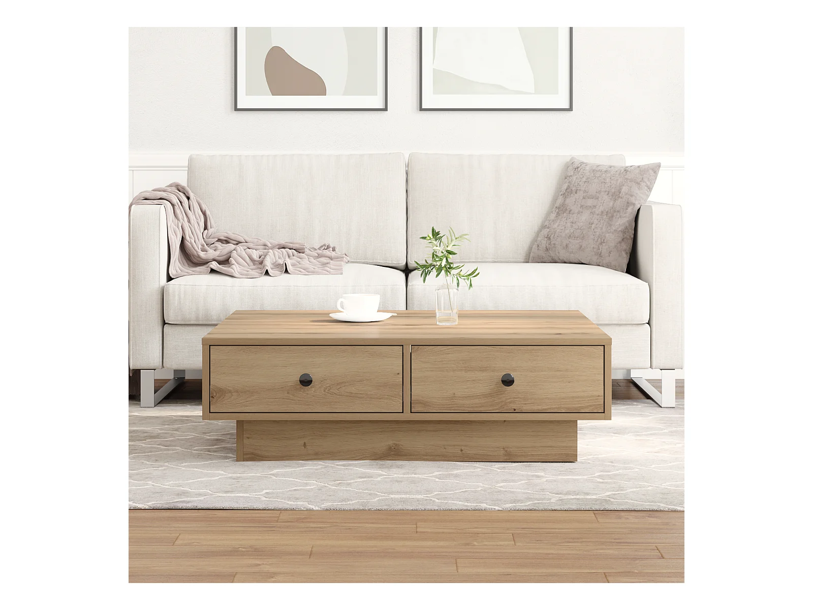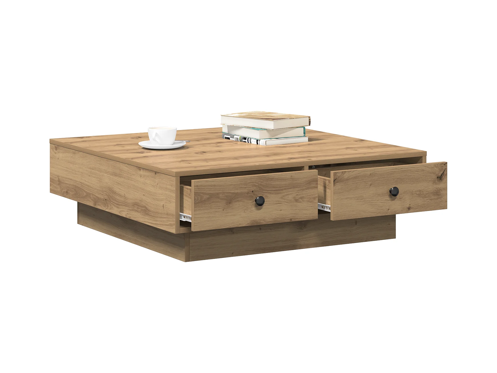 Table Basse Chêne Artisan Placage, MDF 90 x 90 x 28 cm Rangement