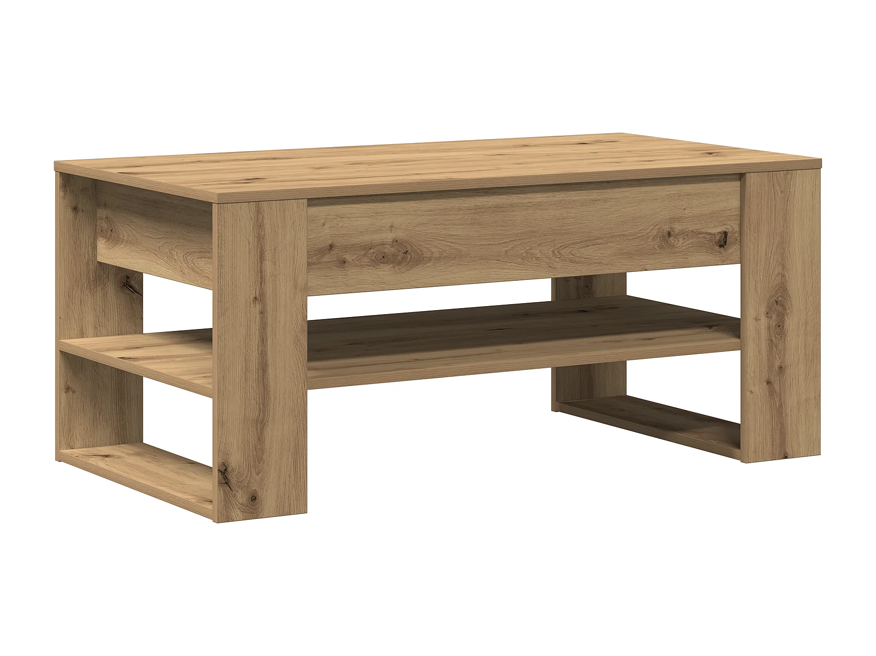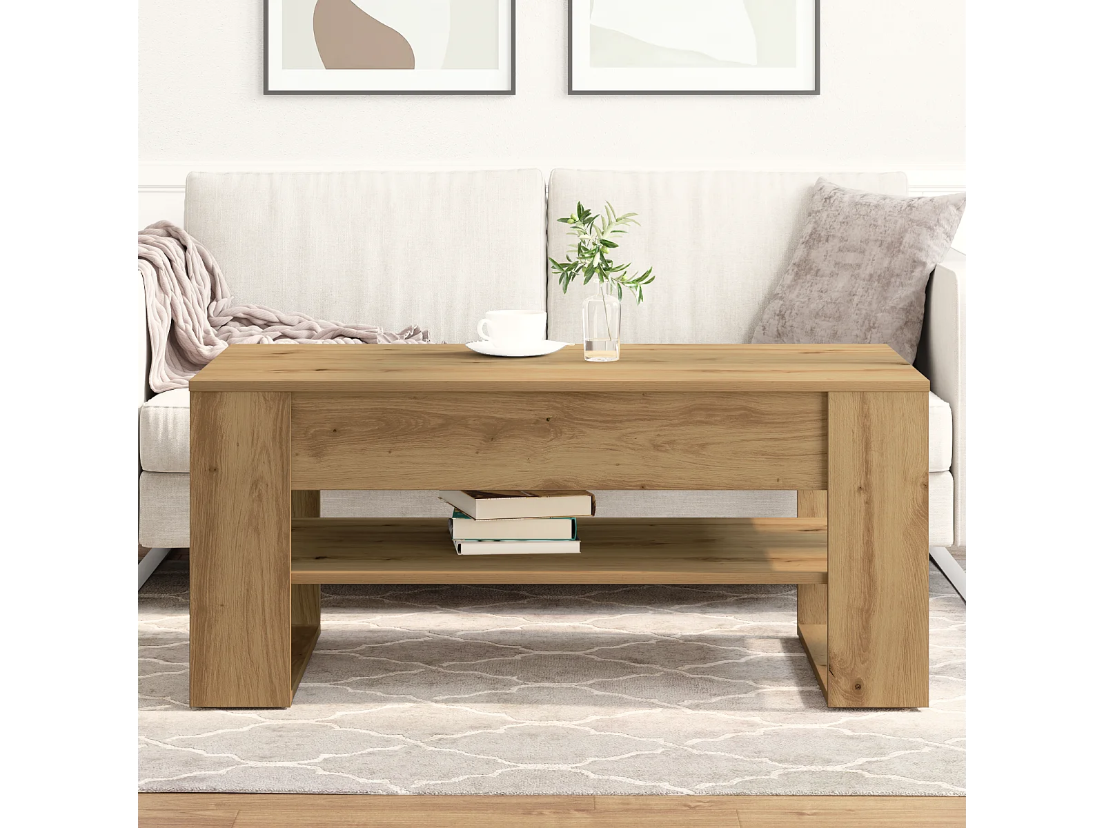 Table basse chêne artisanal 102x55x45 cm en bois stratifié