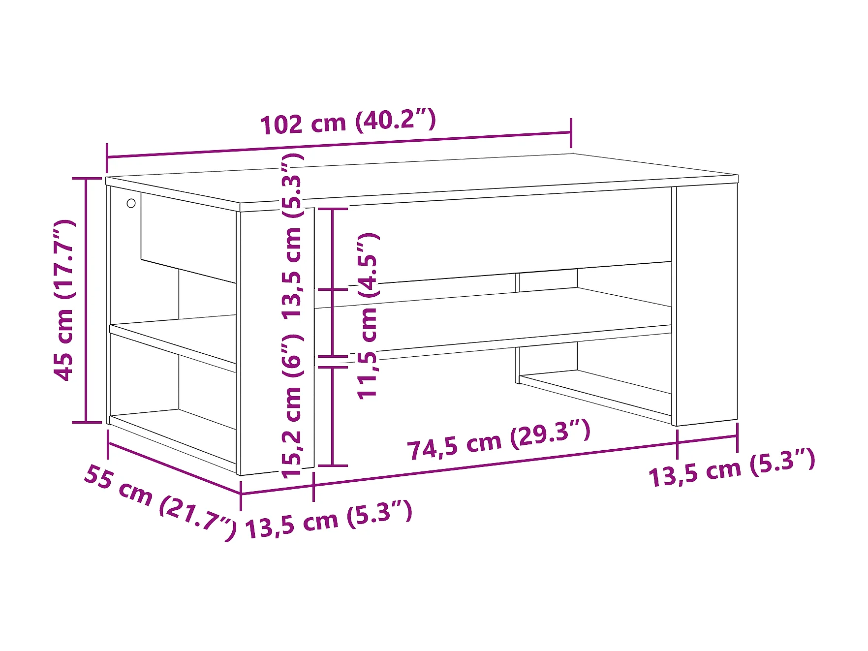 Table basse chêne sonoma 102x55x42 cm bois d'ingénierie FR18998