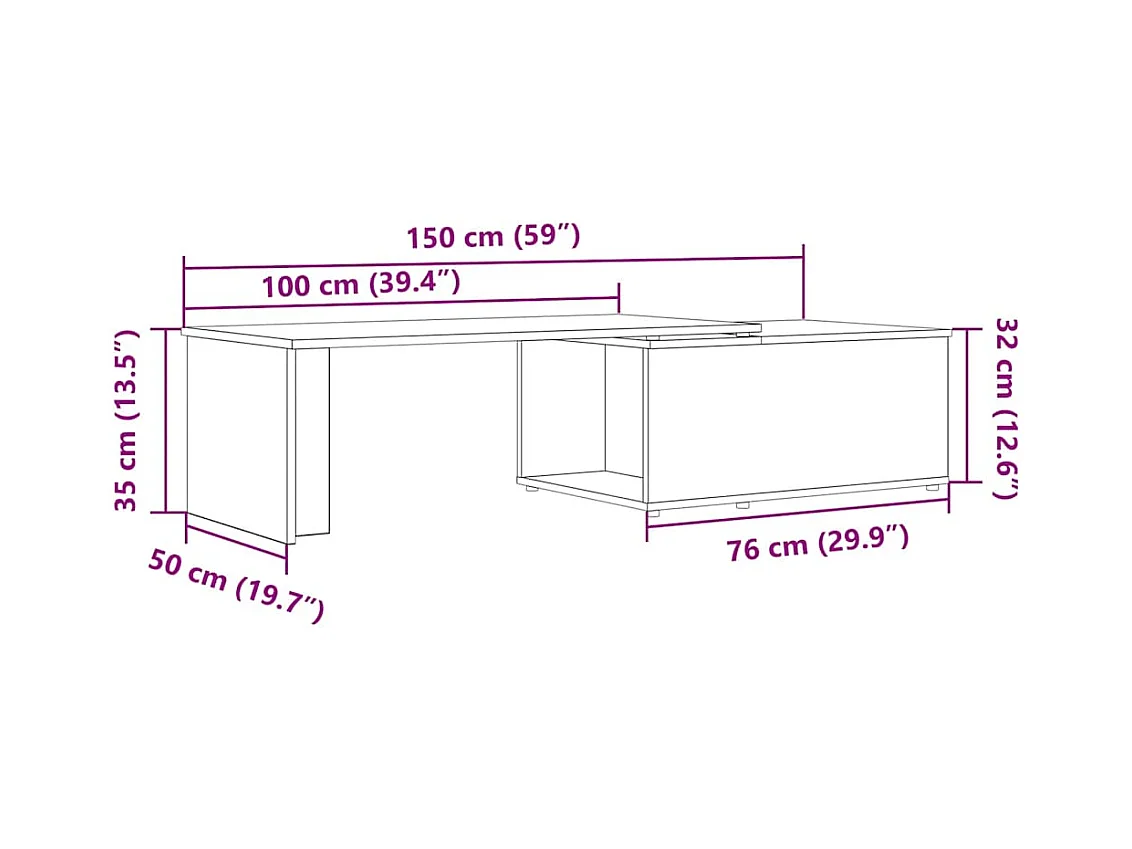 Table basse chêne artisanal 150x50x35 cm bois d'ingénierie
