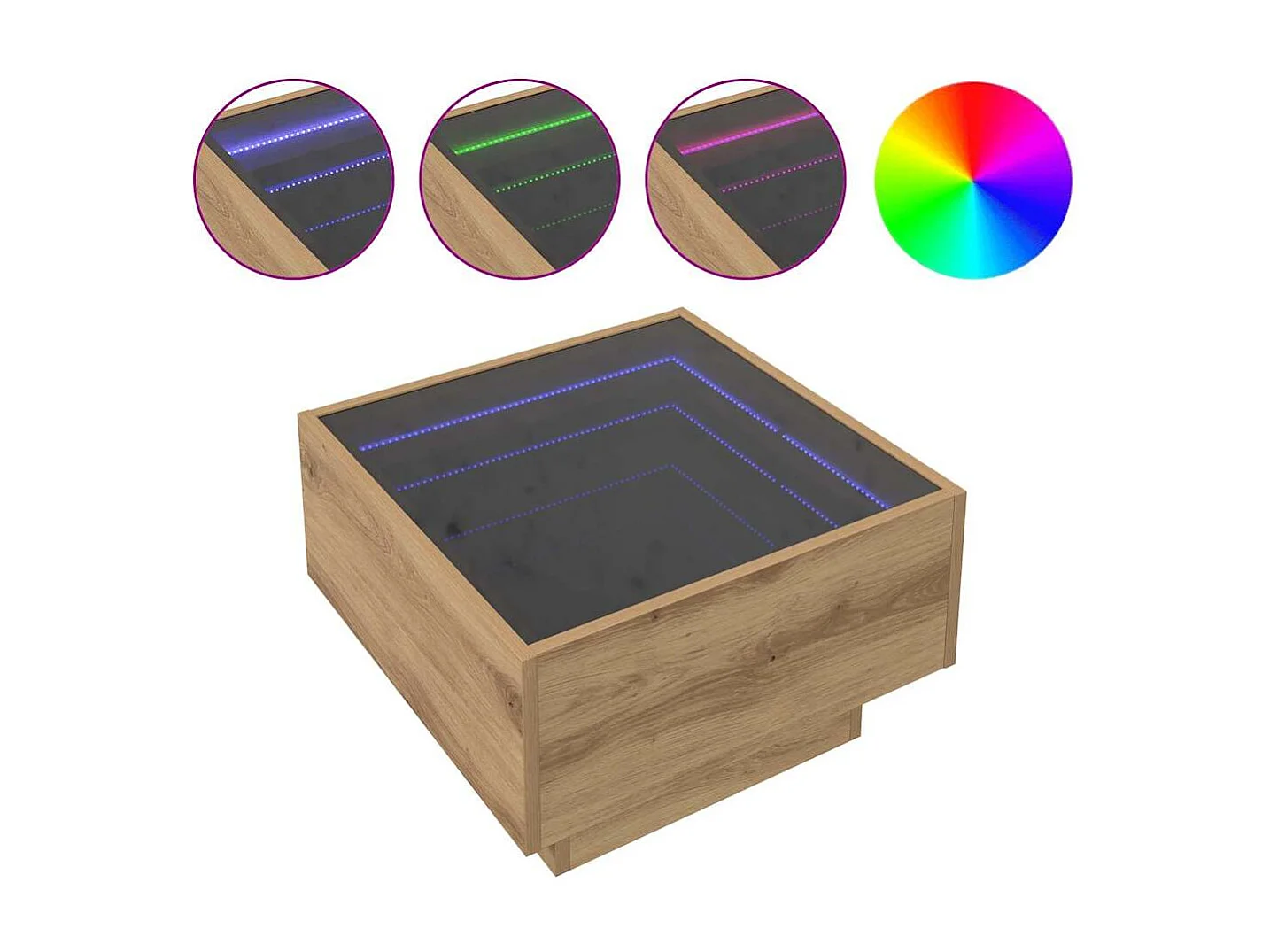 Table basse avec LED infini chêne marron 50x50x50 cm