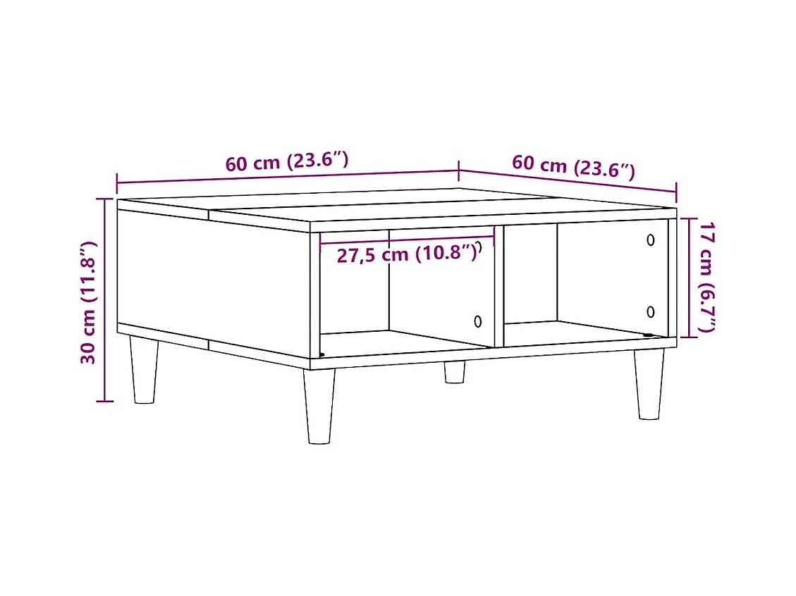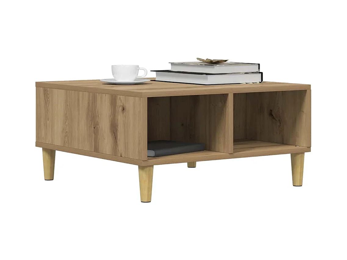 Table basse chêne artisanal 60x60x30 cm bois d'ingénierie