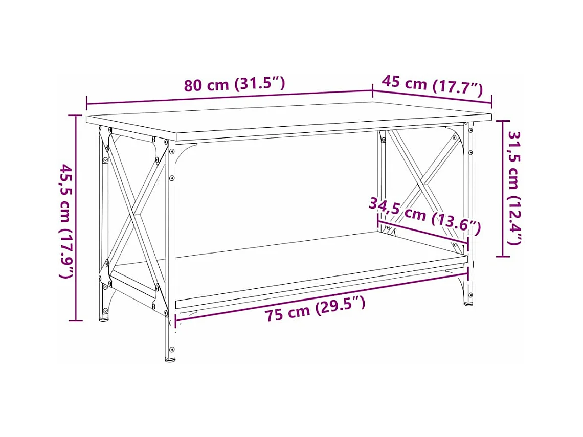 Table basse Chêne sonoma 80x45x45 cm Bois d'ingénierie et fer