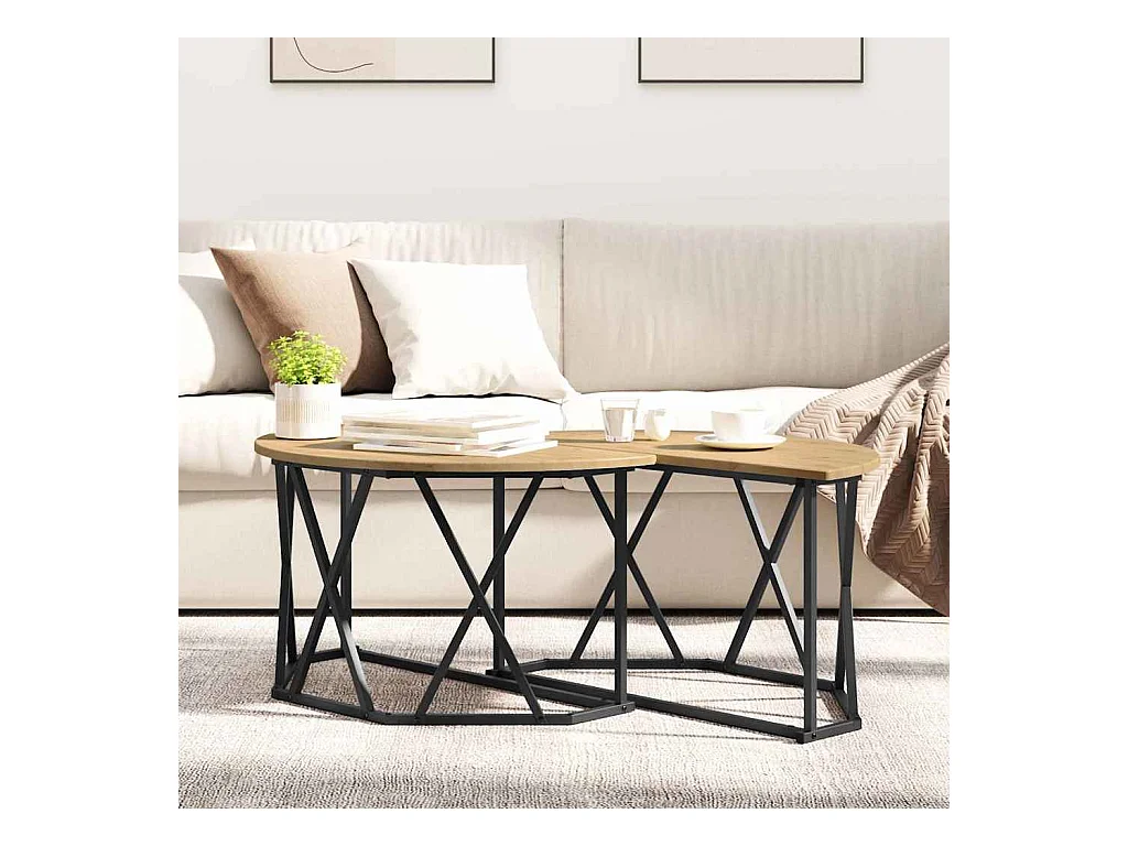 Table basse chêne artisanal 80 x 80 x 31 cm Bois d'ingénierie