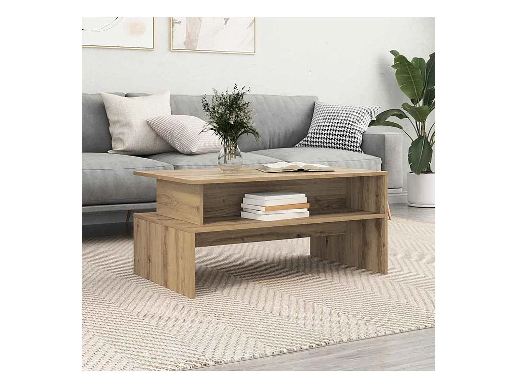Table basse chêne artisanal 90 x 55 x 42.5 cm Bois d'ingénierie