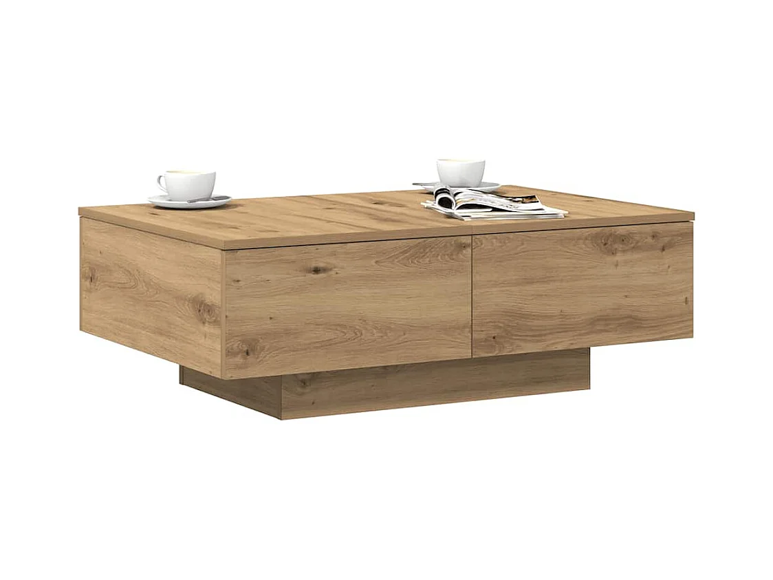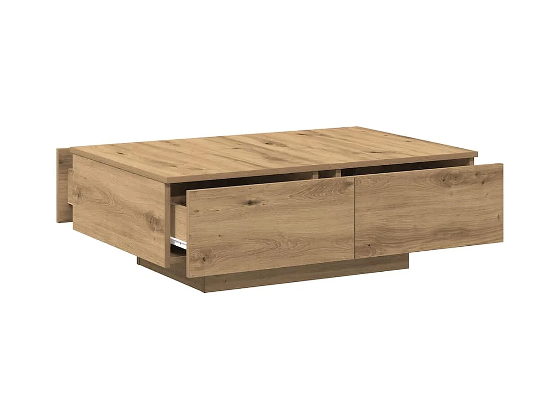 Table basse chêne artisanal 90x60x31 cm bois d'ingénierie