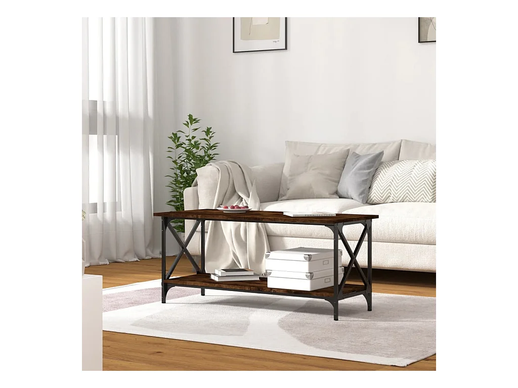 Table basse Chêne fumé 100x50x45 cm Bois d'ingénierie et fer