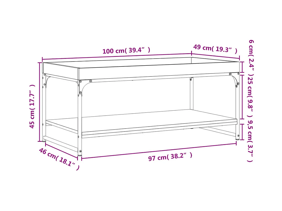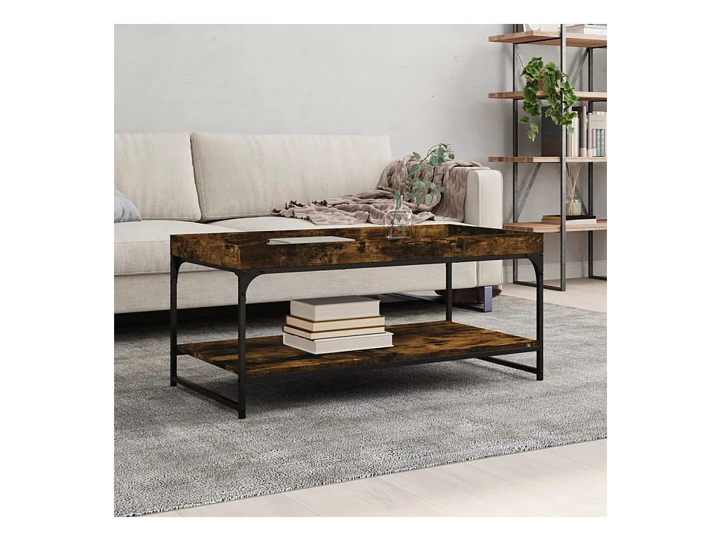 Table basse chêne fumé 100x50x45 cm bois d'ingénierie et métal