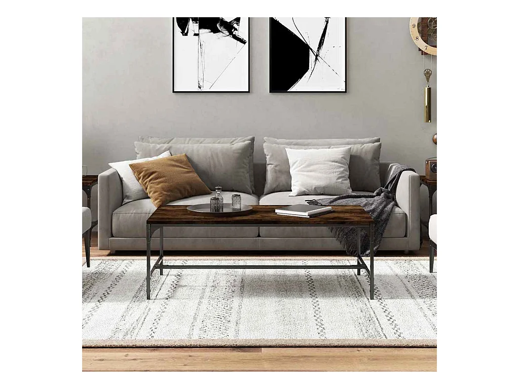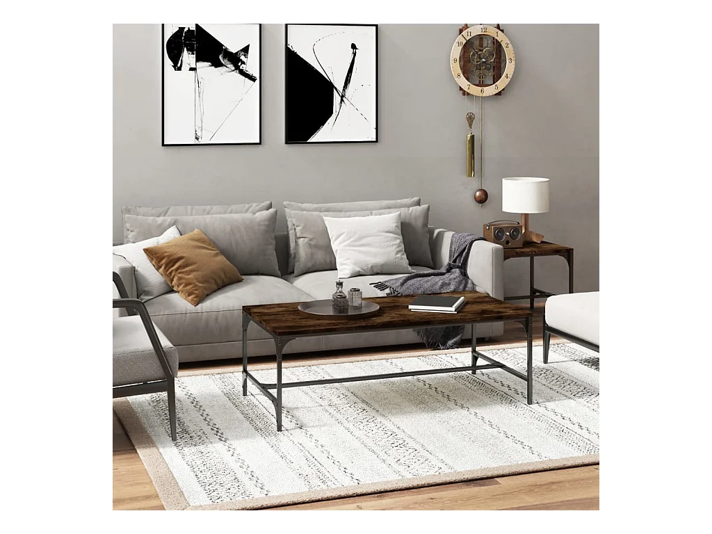 Table basse chêne fumé 100x50x35 cm bois d'ingénierie et métal