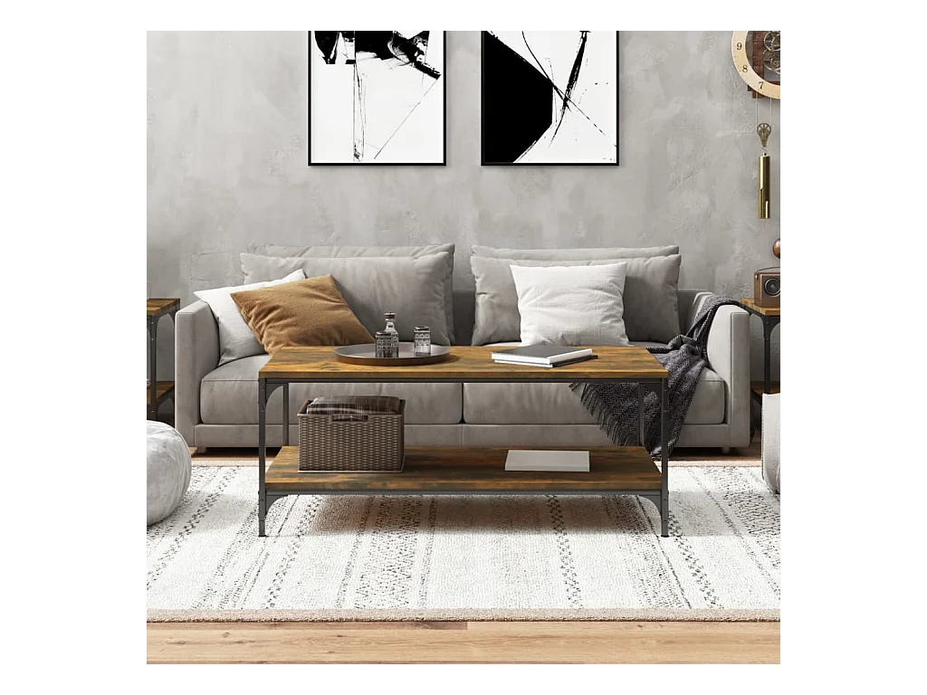 Table basse chêne fumé 100x50x40 cm bois d'ingénierie et métal FR20390