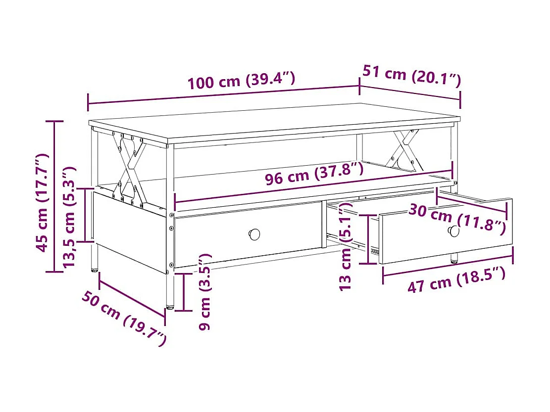 Table basse chêne fumé 100x51x45 cm bois d'ingénierie