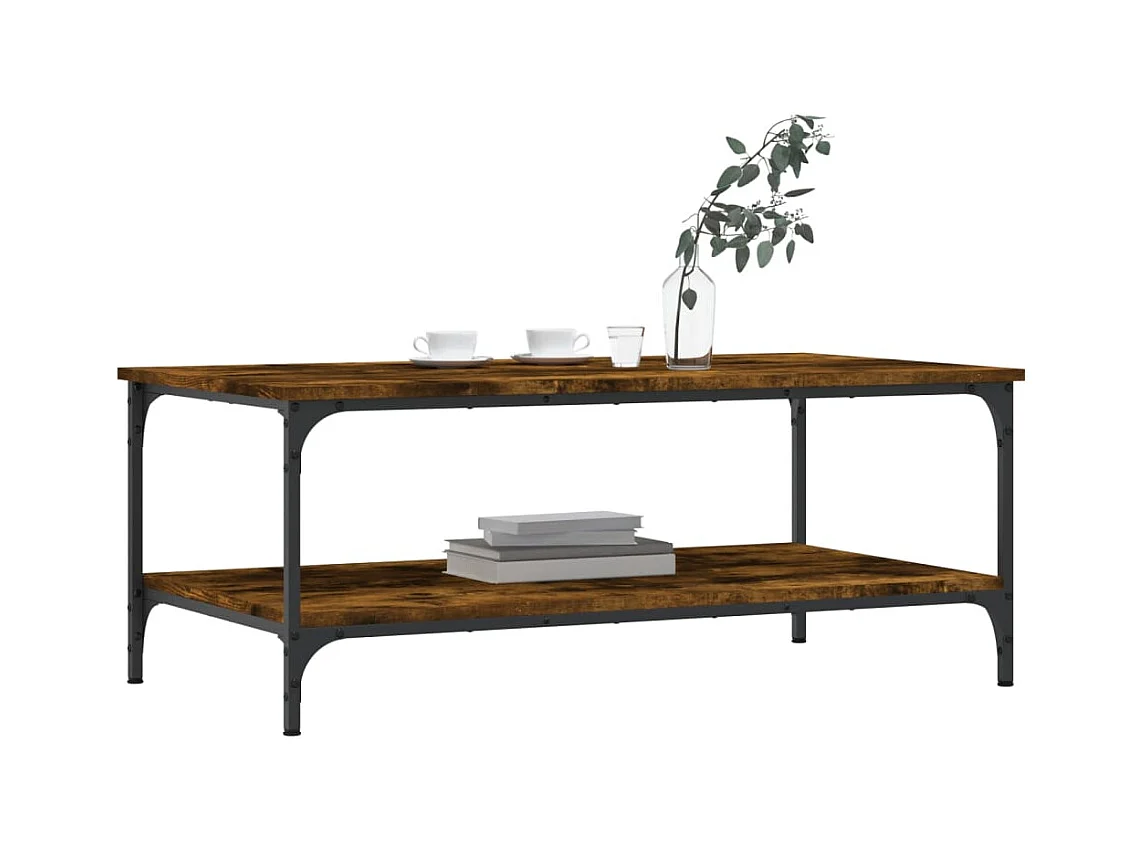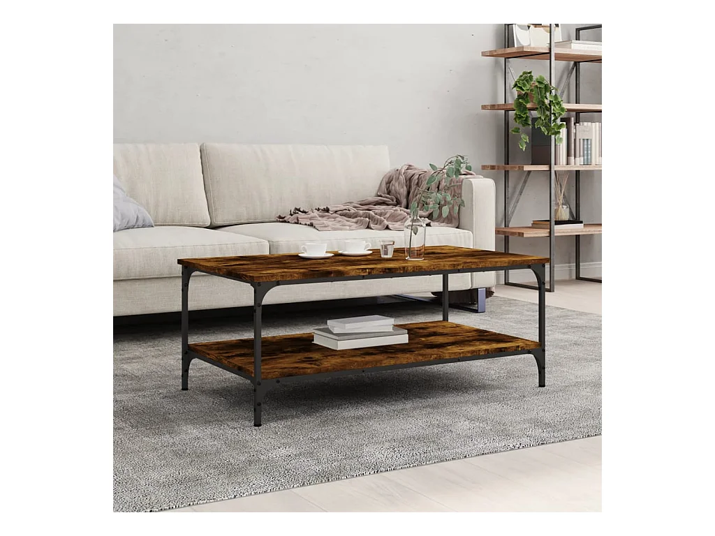 Table basse chêne fumé 100x50x40 cm bois d'ingénierie et métal FR20390