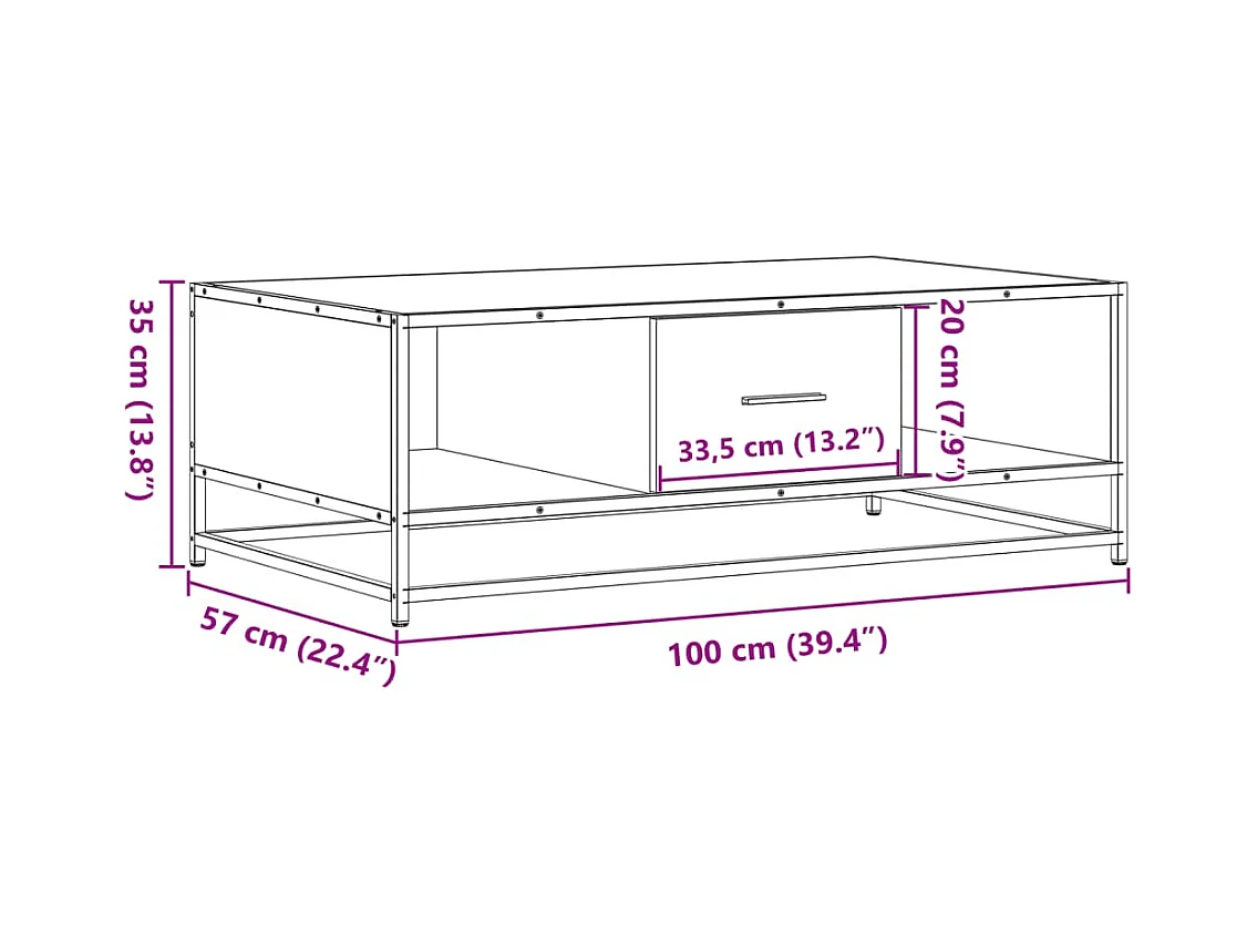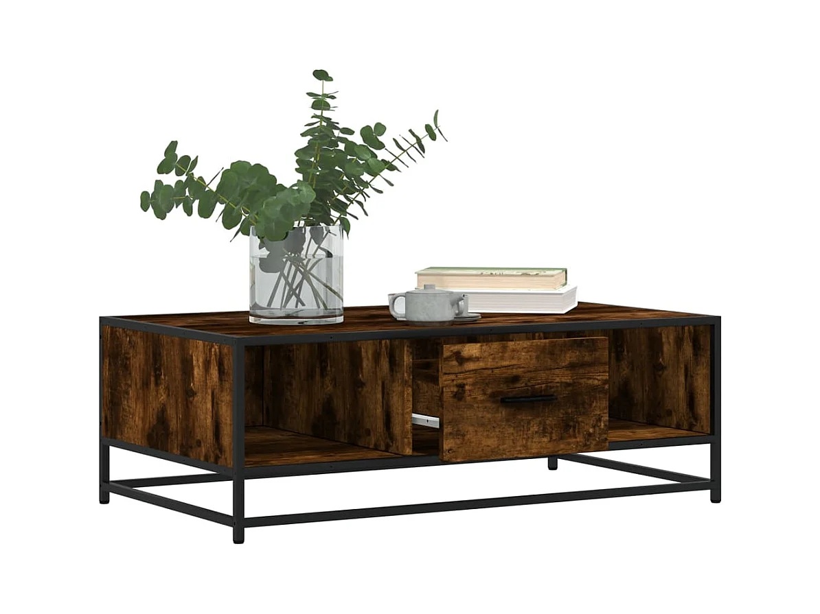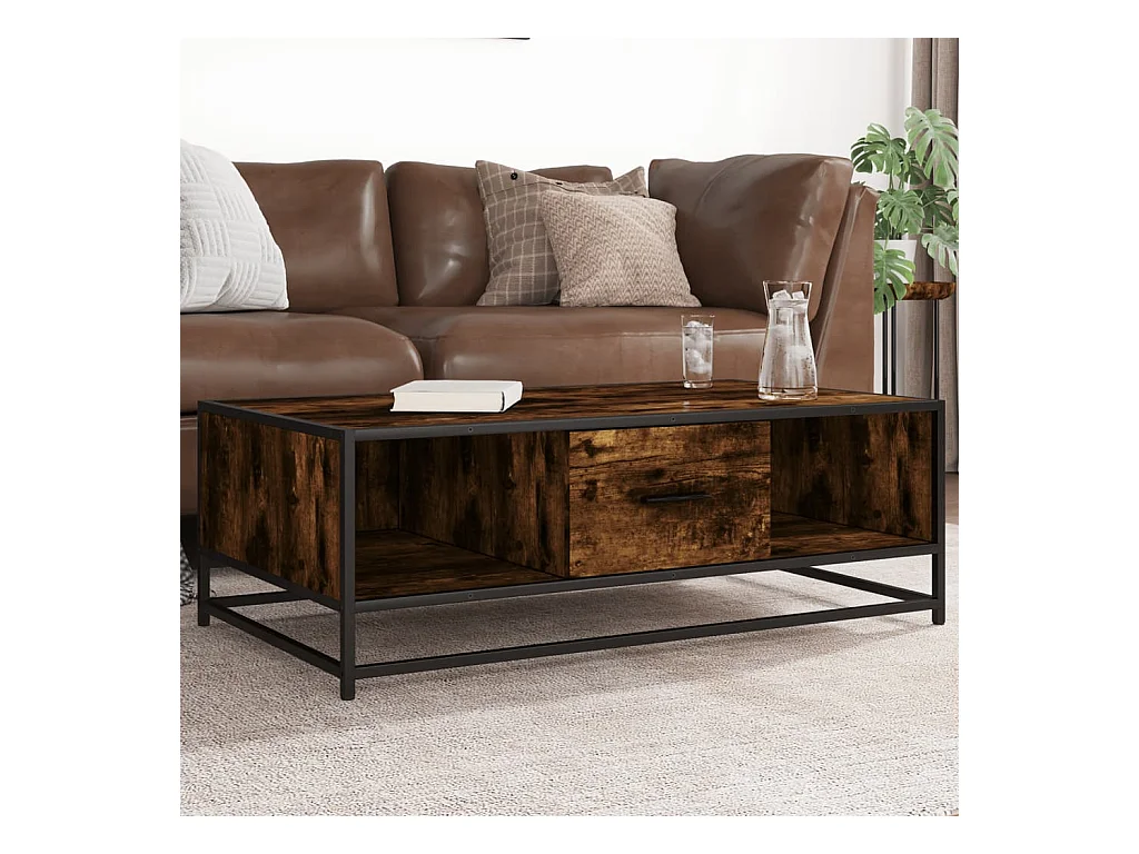 Table basse chêne fumé 100x57x35 cm bois d'ingénierie et métal