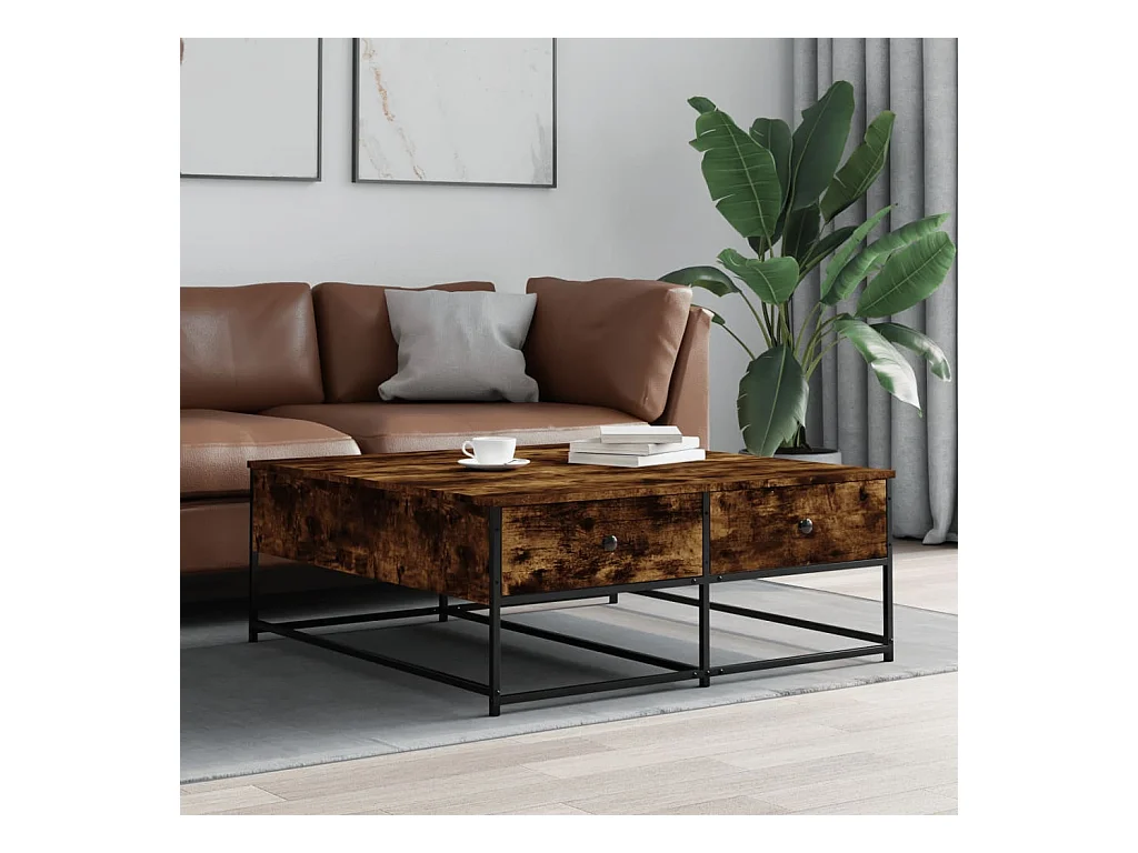 Table basse chêne fumé 100x99x40 cm bois d'ingénierie