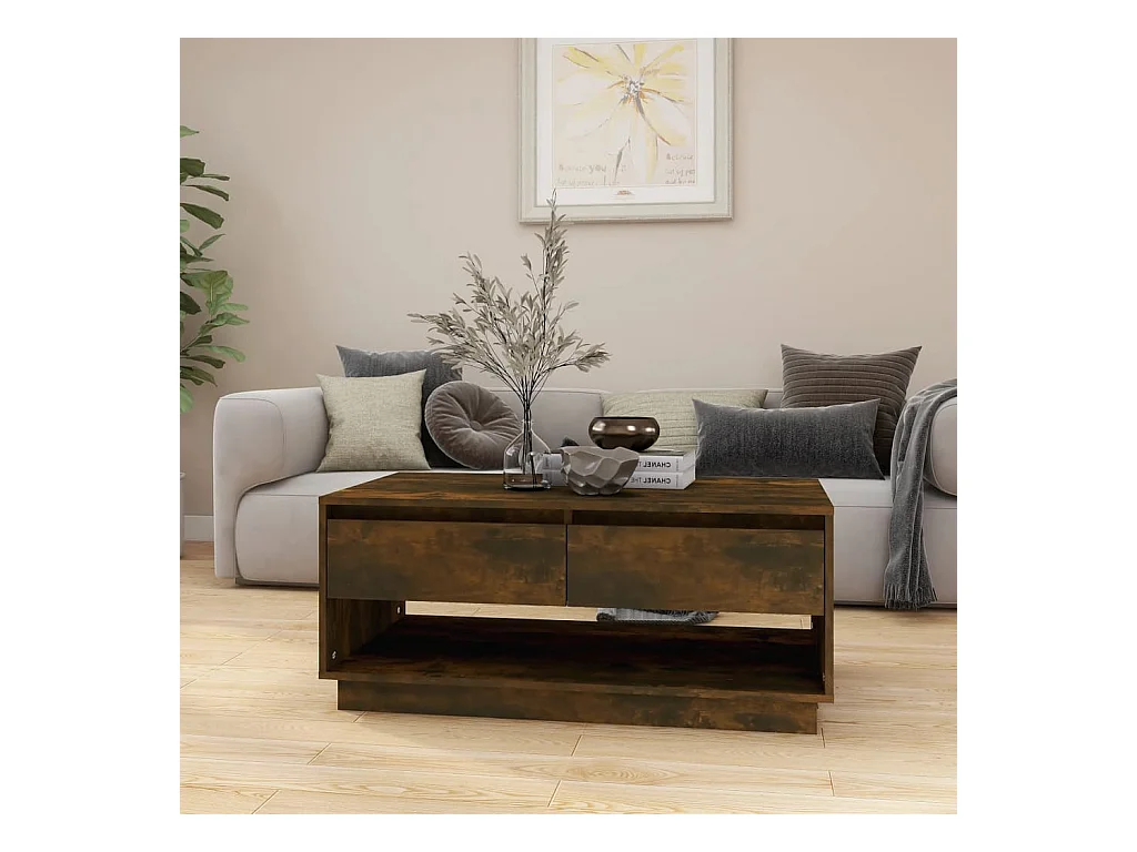 Table basse chêne fumé 102x55x42 cm bois d'ingénierie FR70136