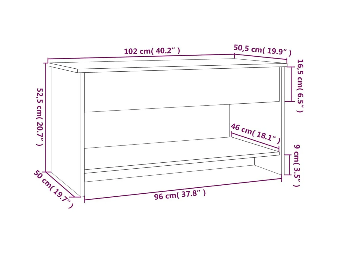Table basse chêne sonoma 102x50x52,5 cm bois d'ingénierie