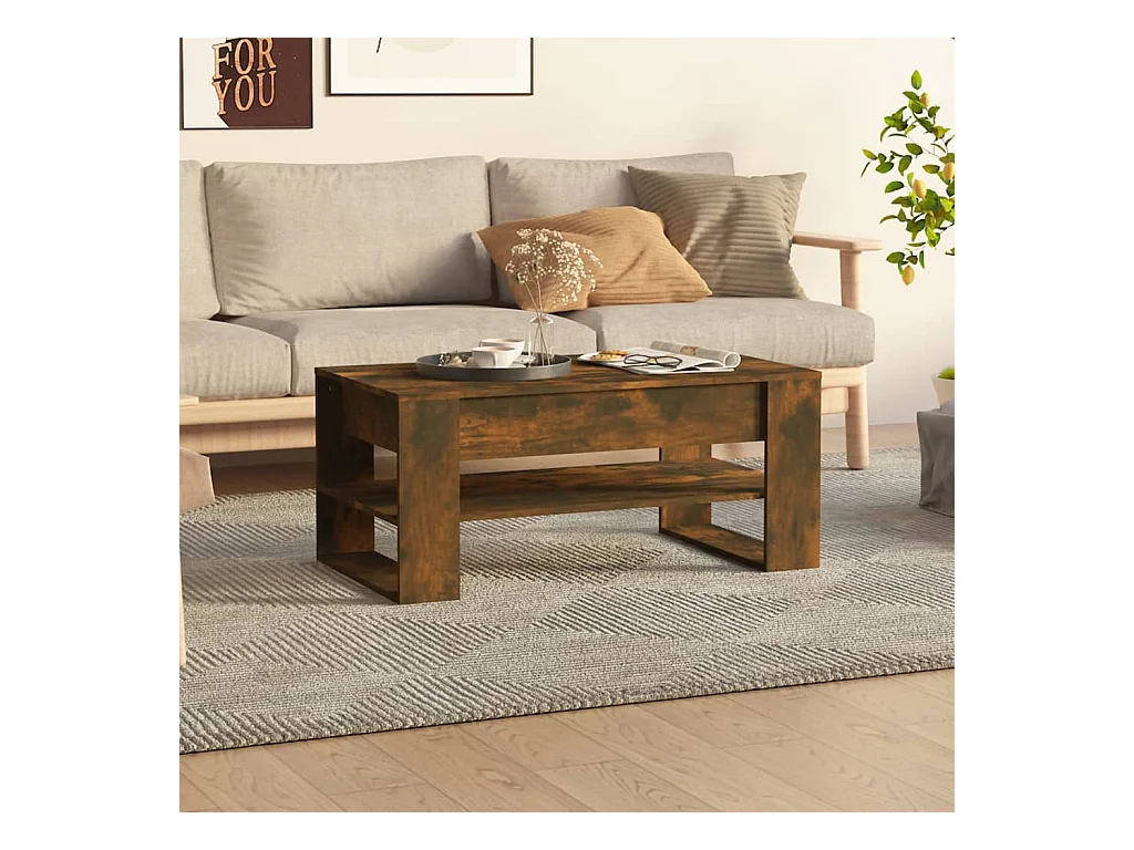 Table basse chêne fumé 102x55x45 cm bois d'ingénierie