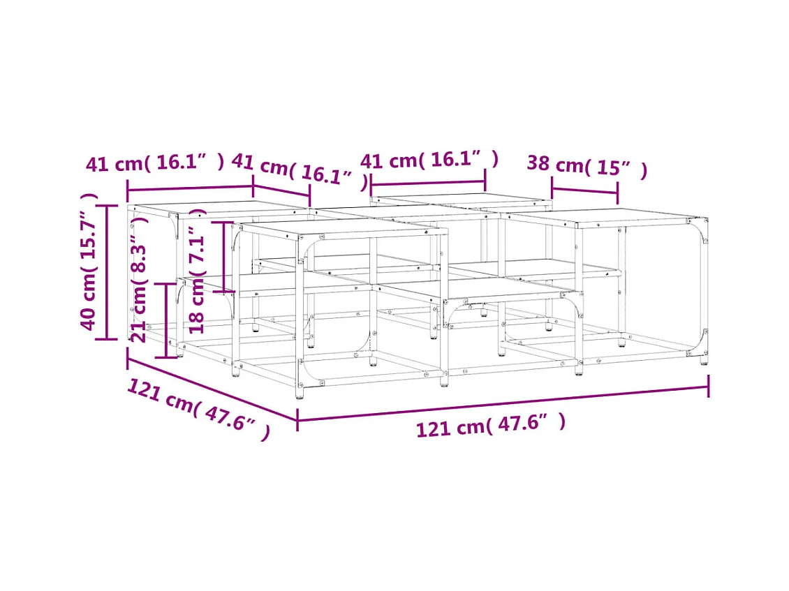 Table basse chêne sonoma 121x121x40 cm bois d'ingénierie