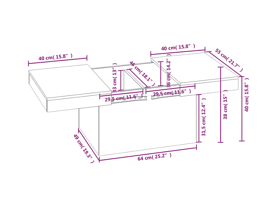 Table basse chêne fumé 80x55x40 cm bois d'ingénierie