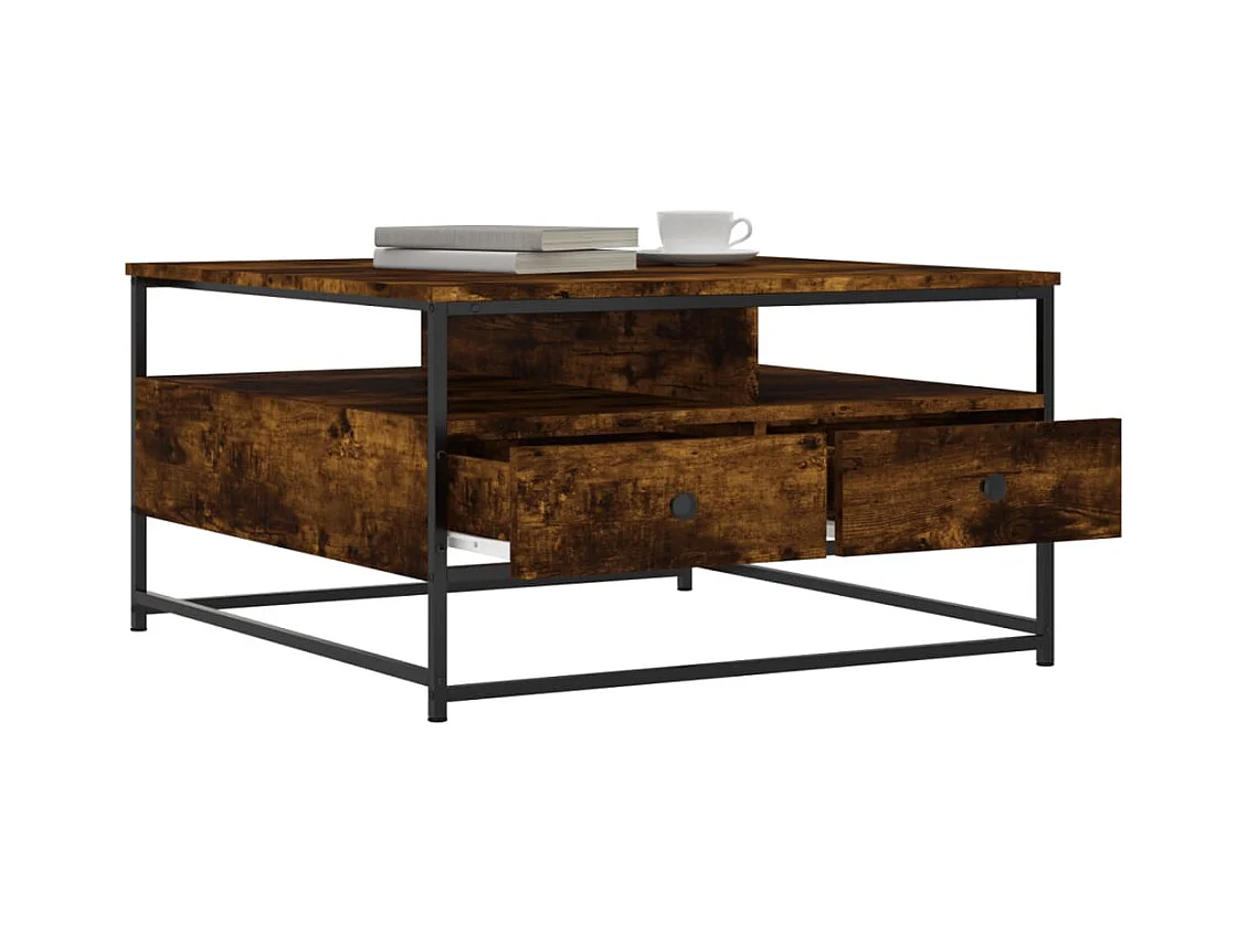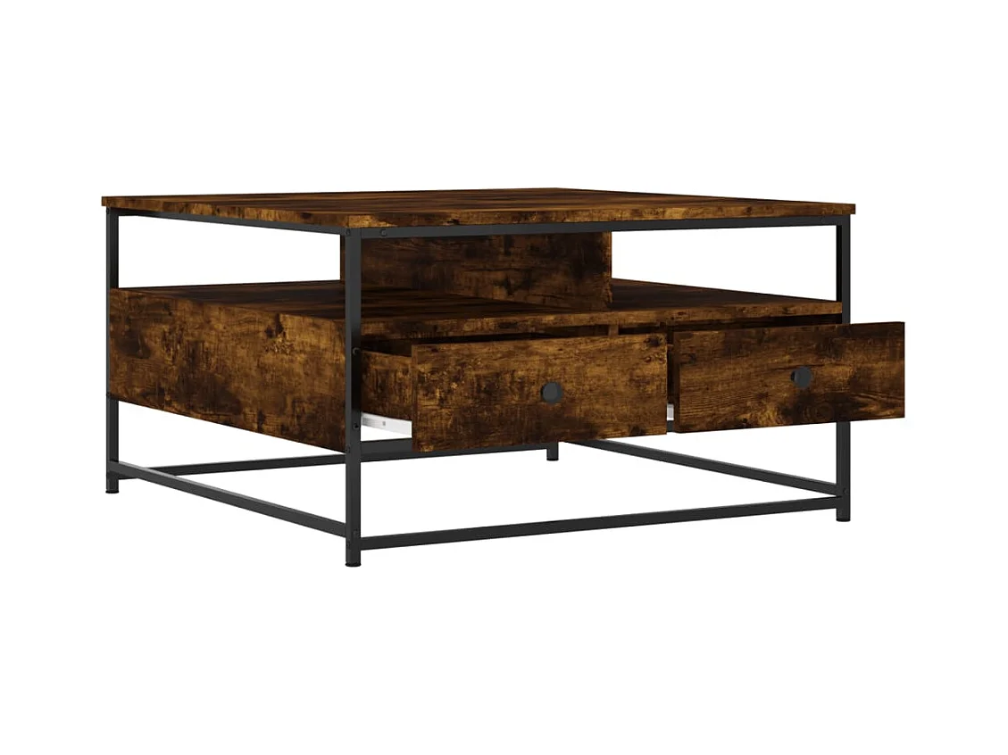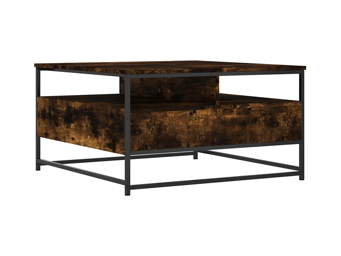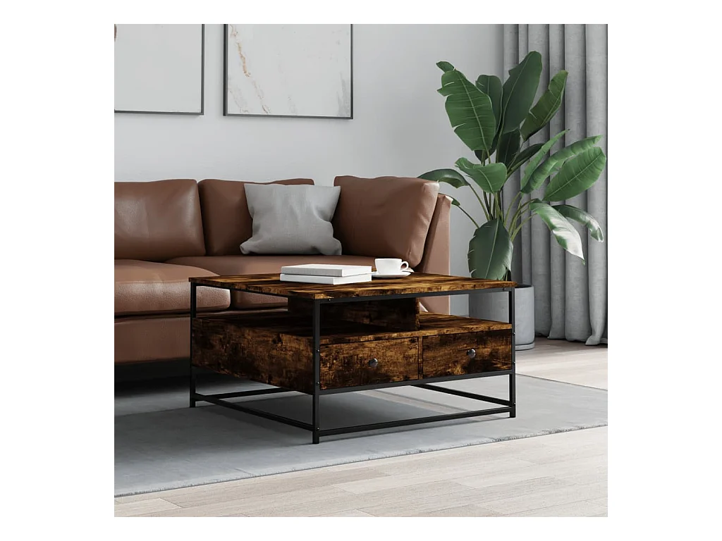 Table basse chêne fumé 80x80x45 cm bois d'ingénierie et fer