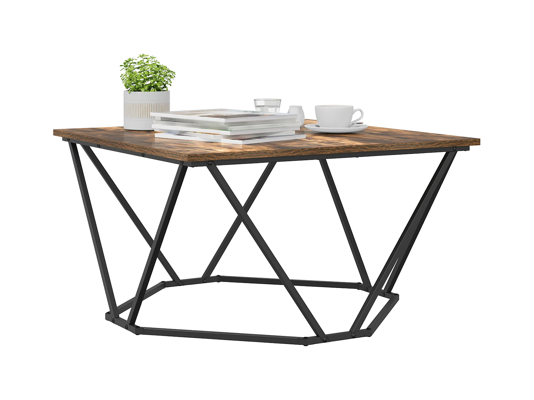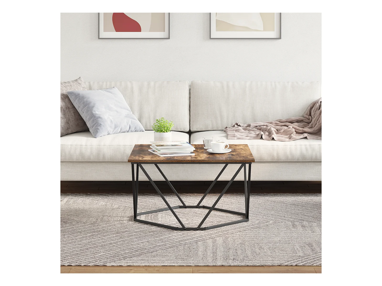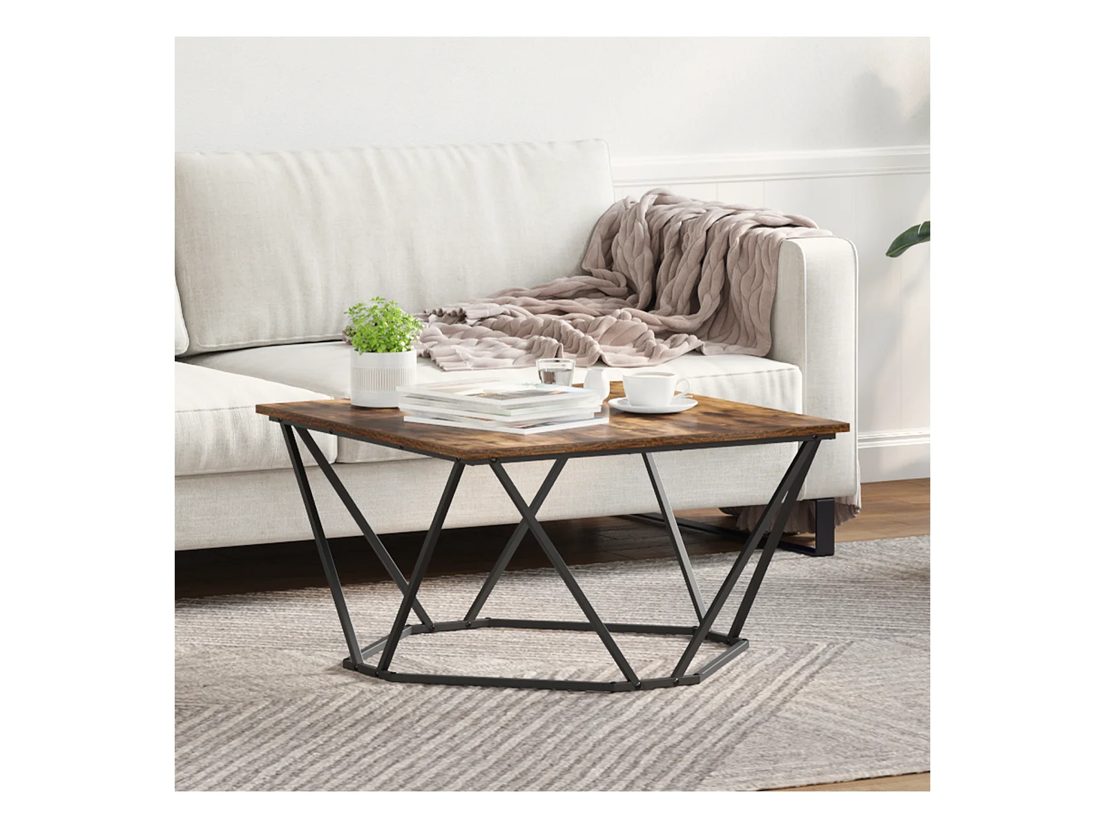 Table basse chêne fumé 80x80x45 cm bois d'ingénierie et fer