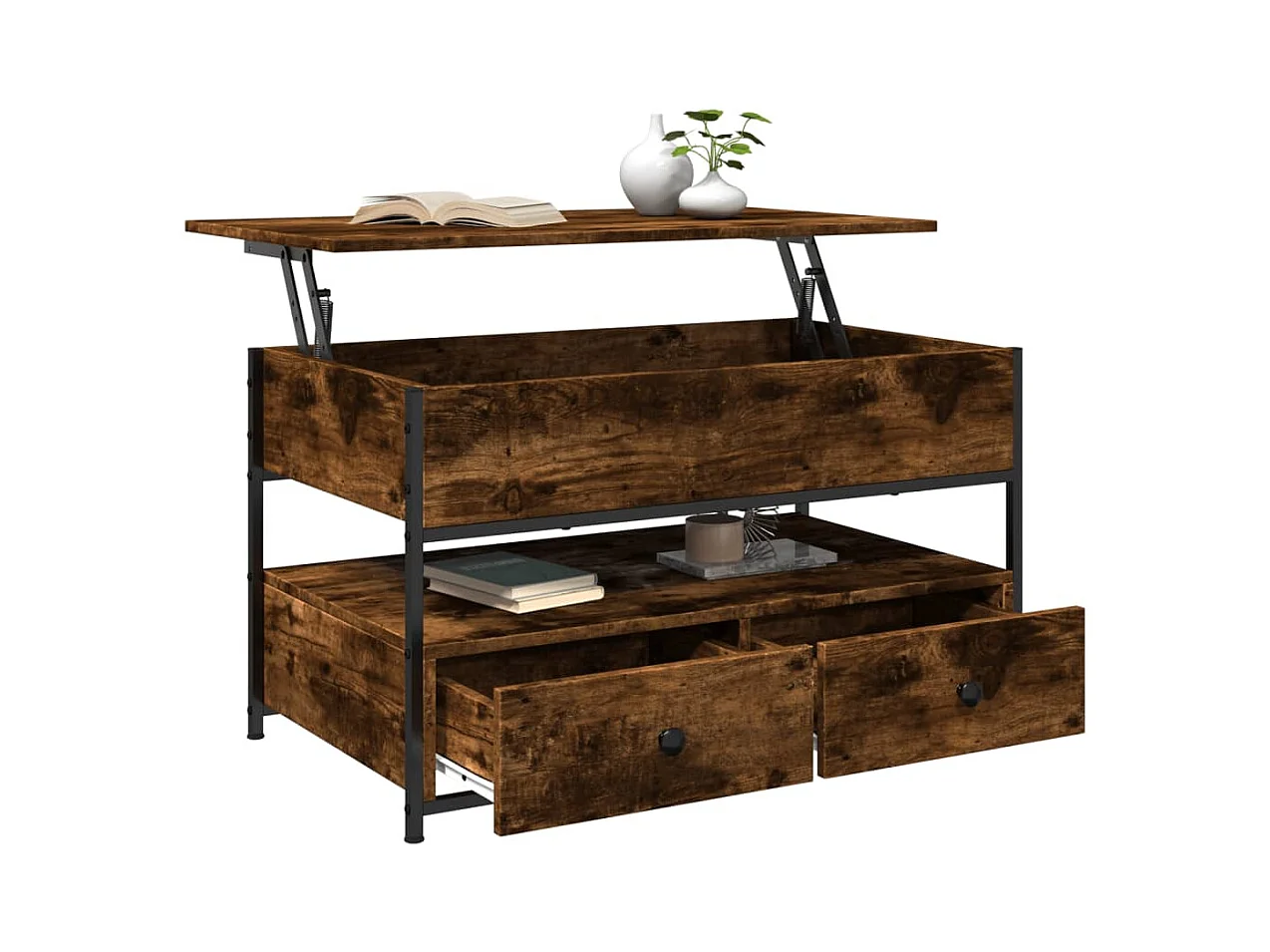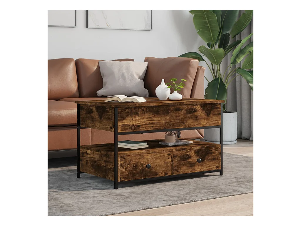 Table basse chêne fumé 100x50x50 cm bois d'ingénierie et métal