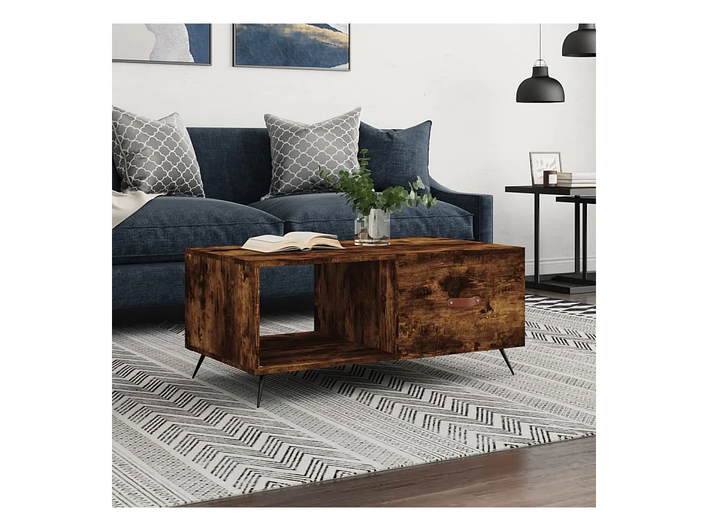 Table basse chêne fumé 90x50x40 cm bois d'ingénierie