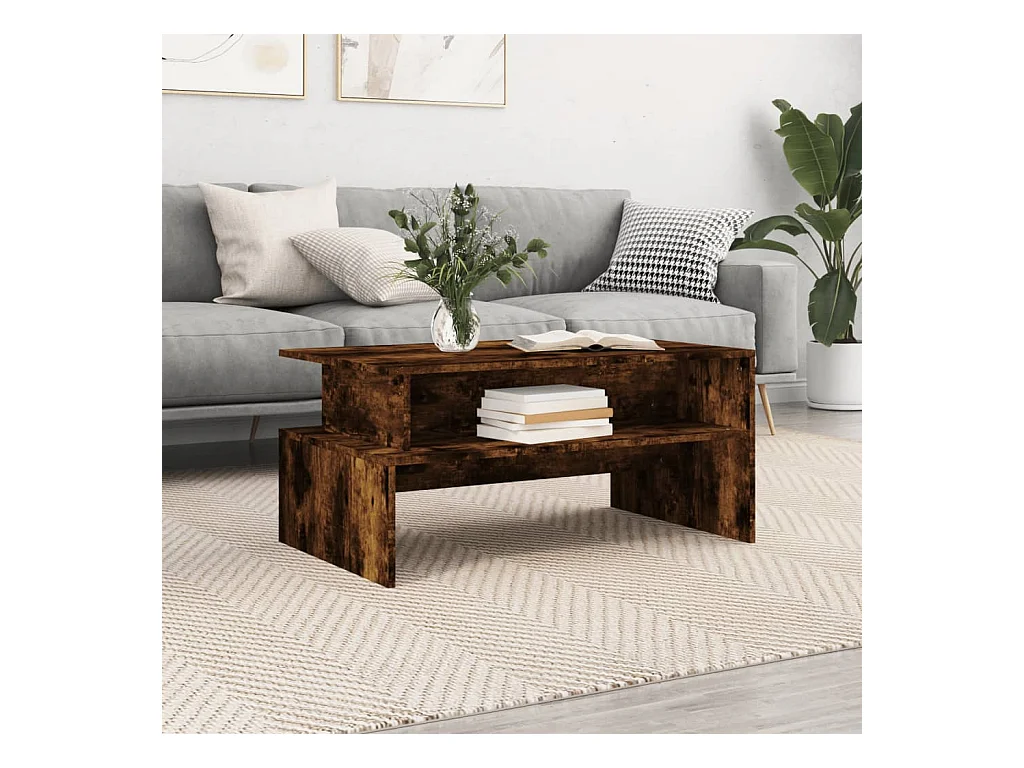 Table basse chêne fumé 90x55x42,5 cm bois d'ingénierie