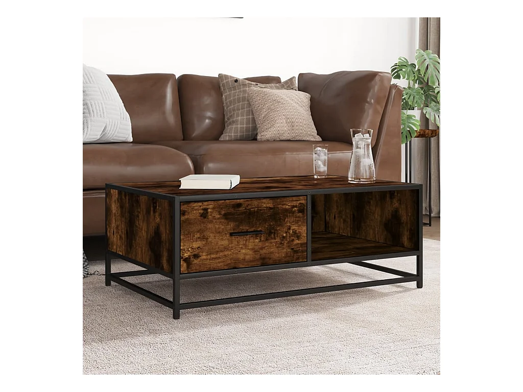 Table basse chêne fumé 90x57x35 cm bois d'ingénierie et métal