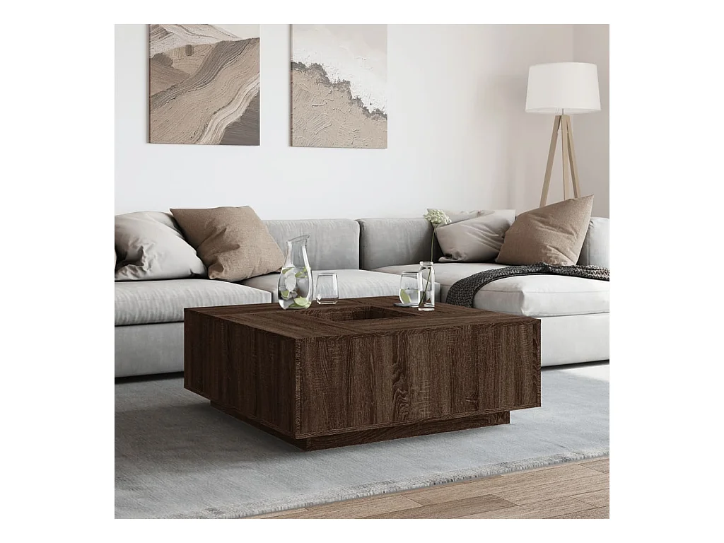 Table basse avec LED infini chêne marron 100x100x40 cm