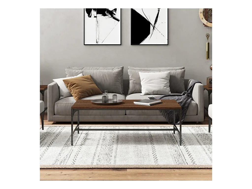 Table basse chêne fumé 100x50x35 cm bois d'ingénierie et métal