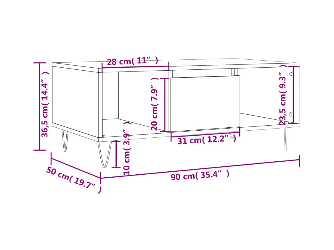 Table basse Chêne marron 90x50x36,5 cm Bois d'ingénierie