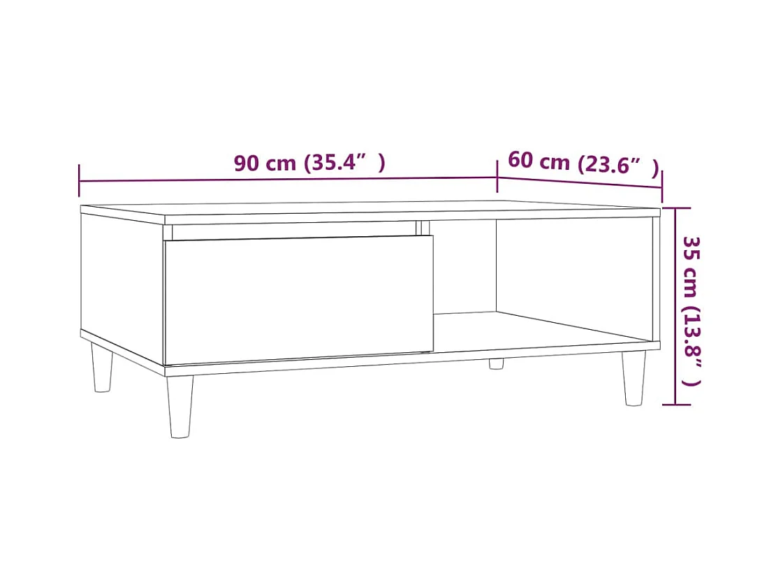 Table basse chêne sonoma 90x60x35 cm bois d'ingénierie