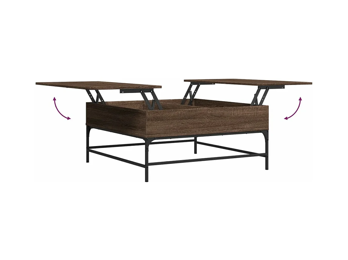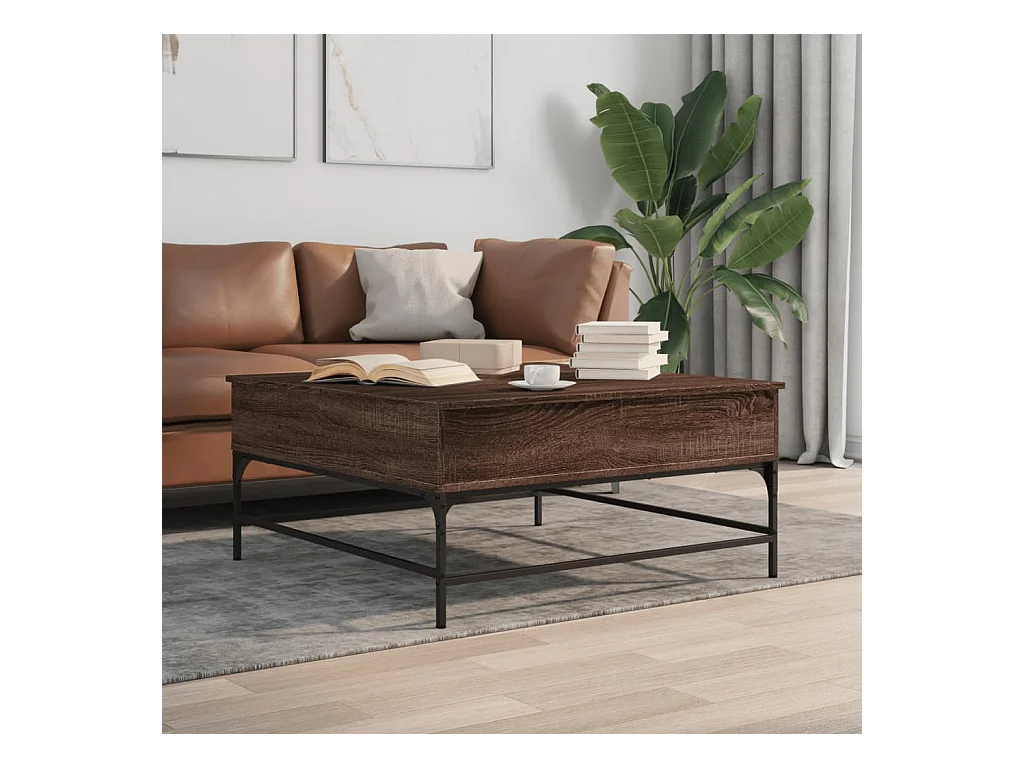 Table basse chêne marron 95x95x45 cm bois d'ingénierie et métal