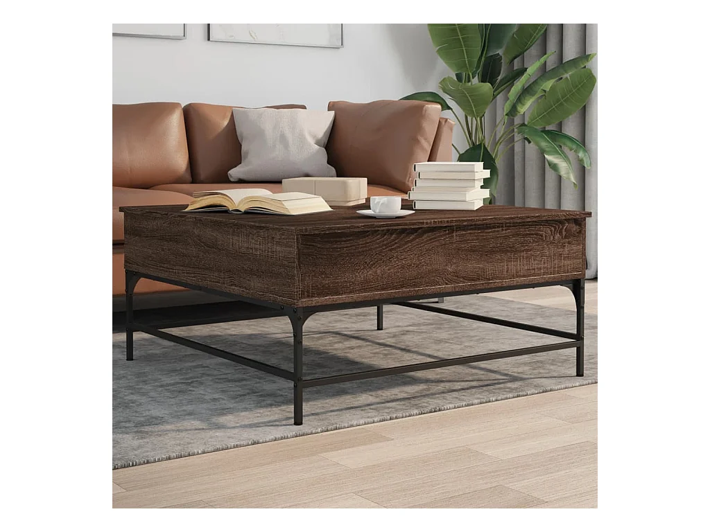 Table basse chêne fumé 95x95x45 cm bois d'ingénierie et métal