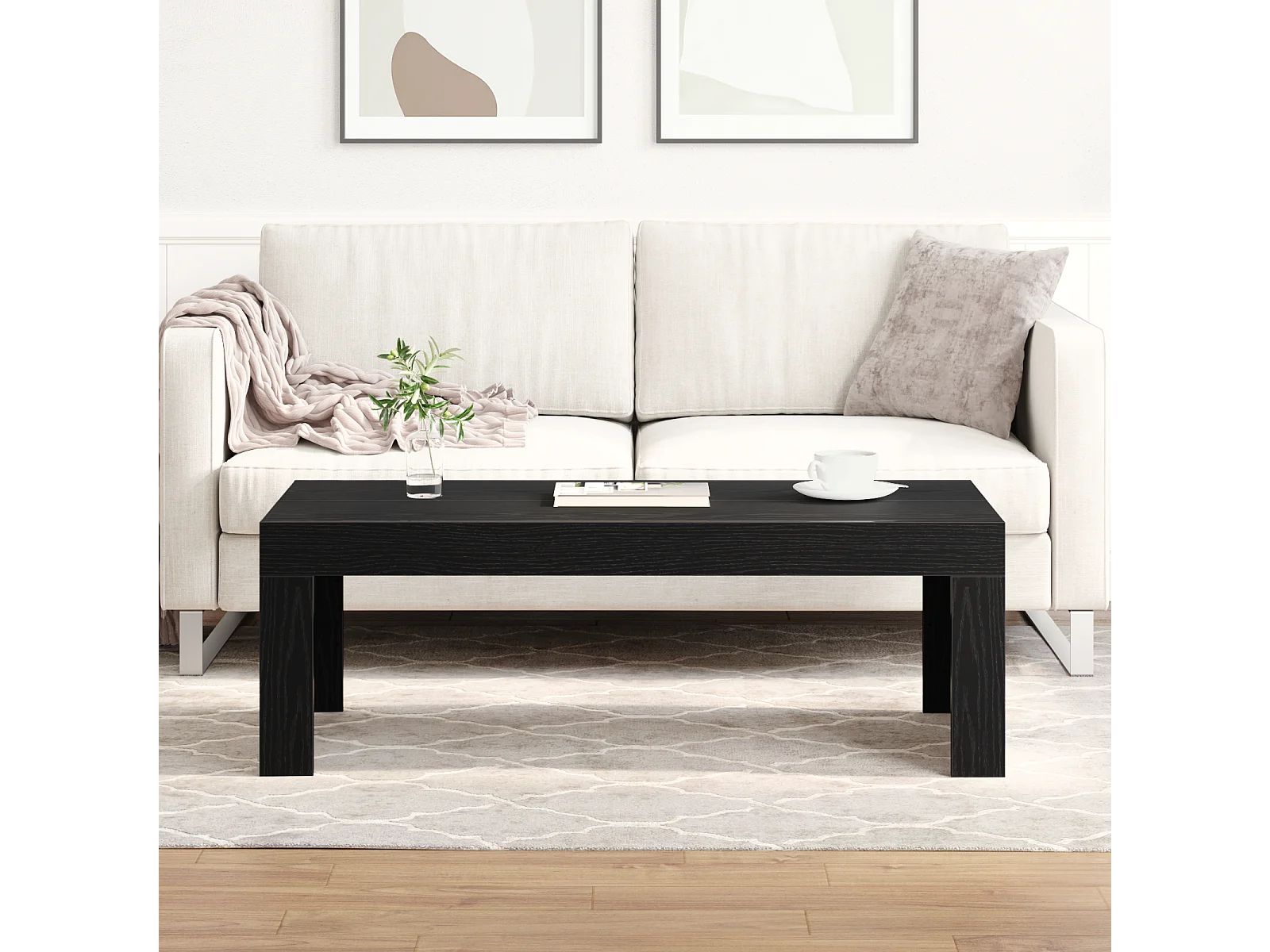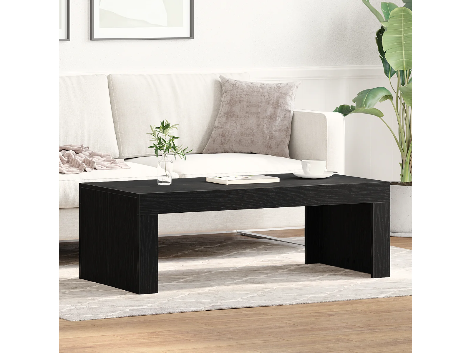 Table basse noire en chêne 102x50x35 cm en bois d'ingénierie