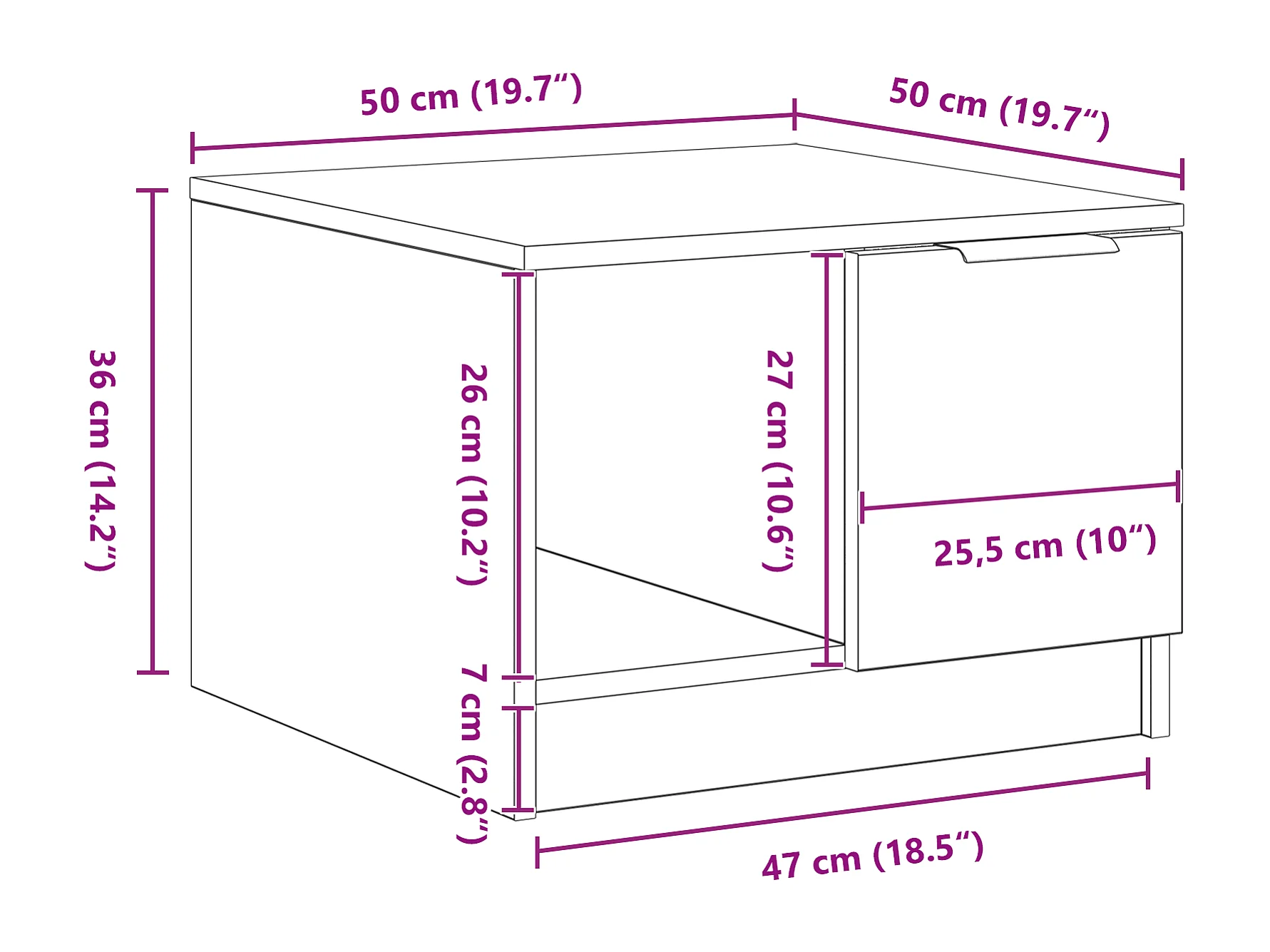 Table d'appoint en chêne noir - 50x50x35 cm, en bois d'ingénierie