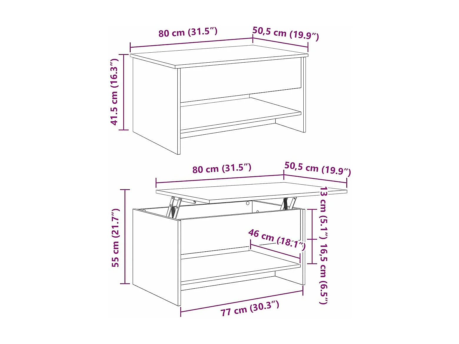 Table basse Chêne noir 80 x 50,5 x 42,5 cm Bois d'ingénierie