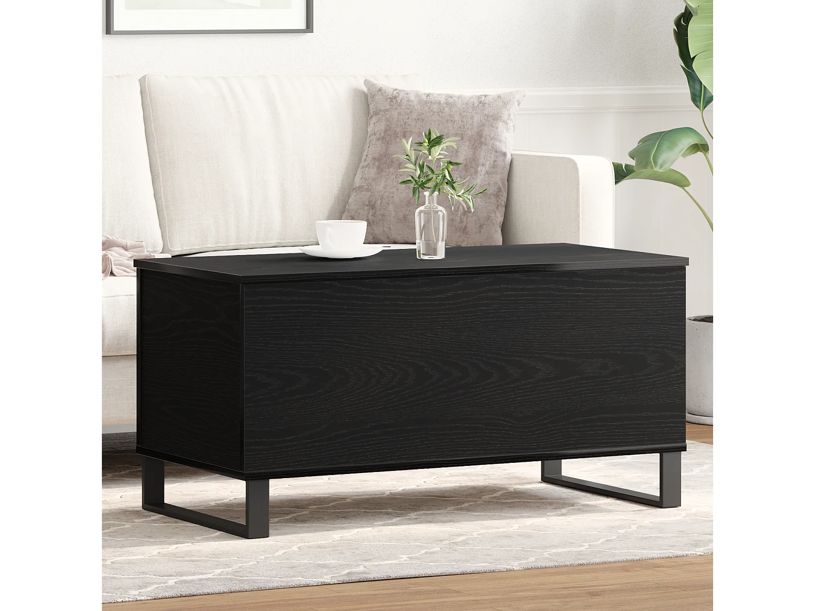 Table basse en chêne noir 90x49x45 cm en bois d'ingénierie