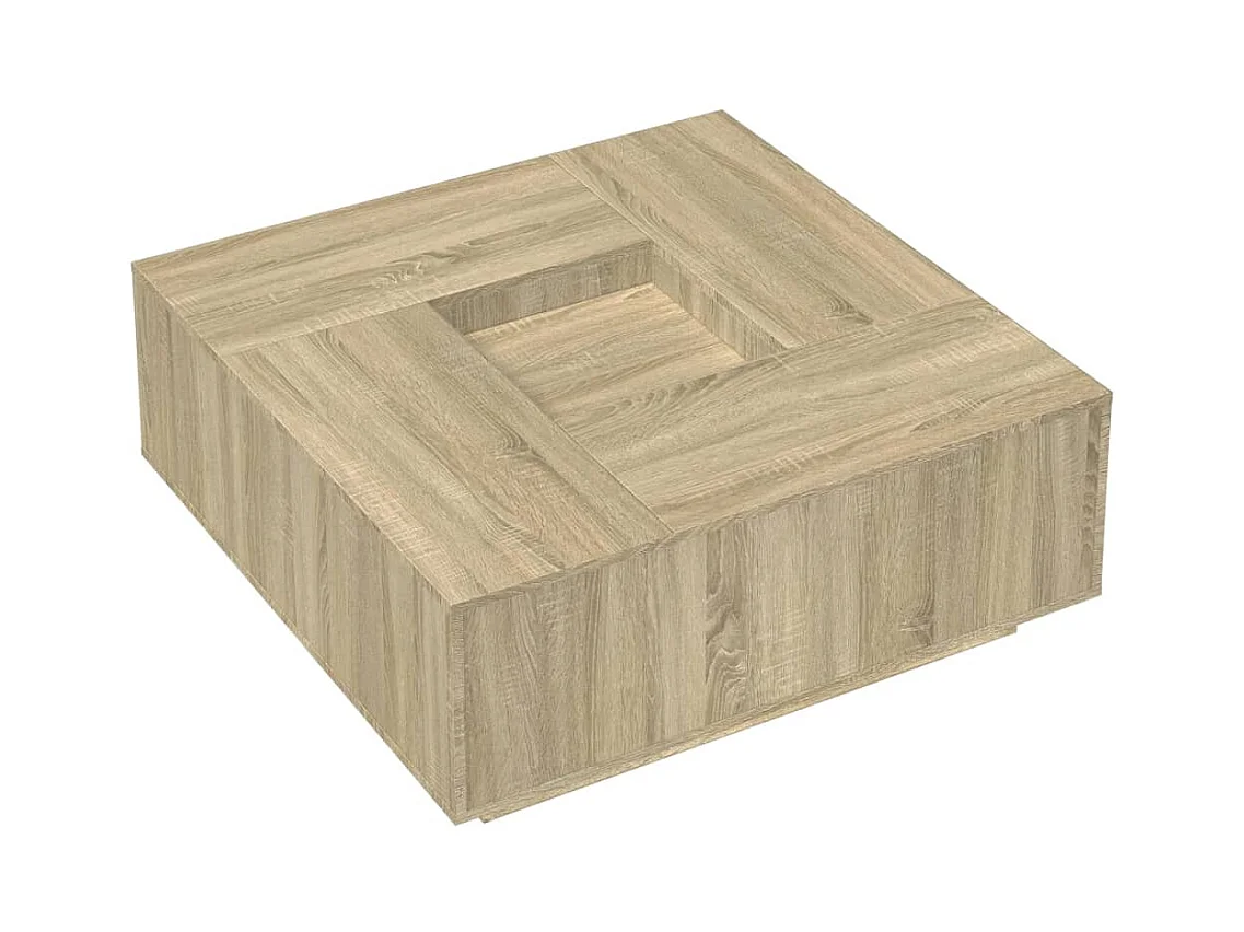 Table basse chêne artisanal 100x100x35 cm bois d'ingénierie
