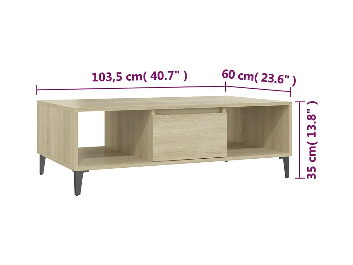 Table basse chêne sonoma 103,5x60x35 cm bois d'ingénierie