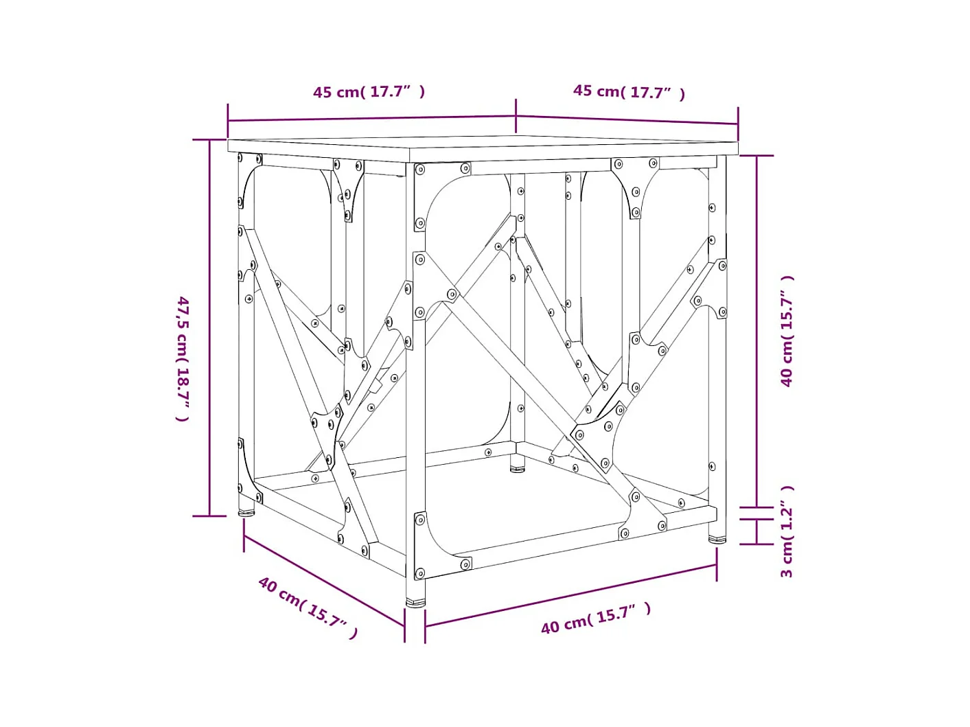 Table basse chêne fumé 45x45x47,5 cm bois d'ingénierie