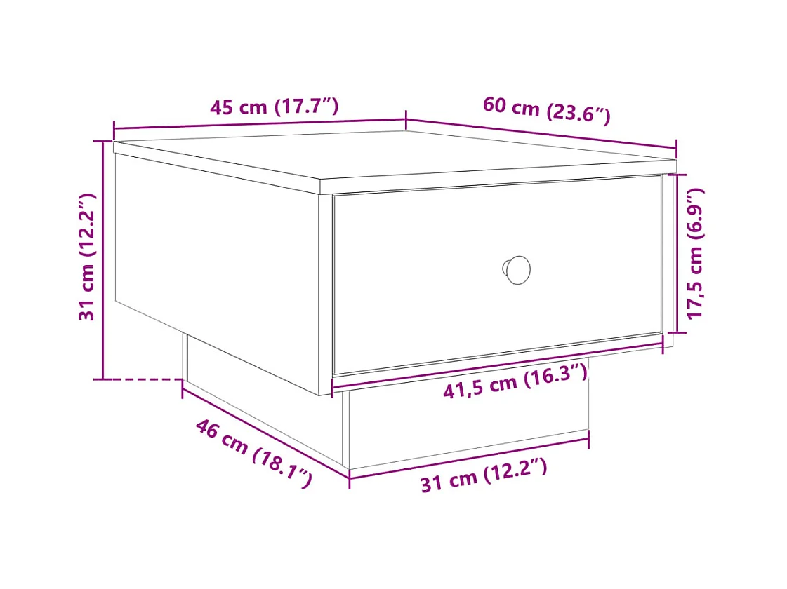 Table basse chêne fumé 60x45x31 cm bois d'ingénierie